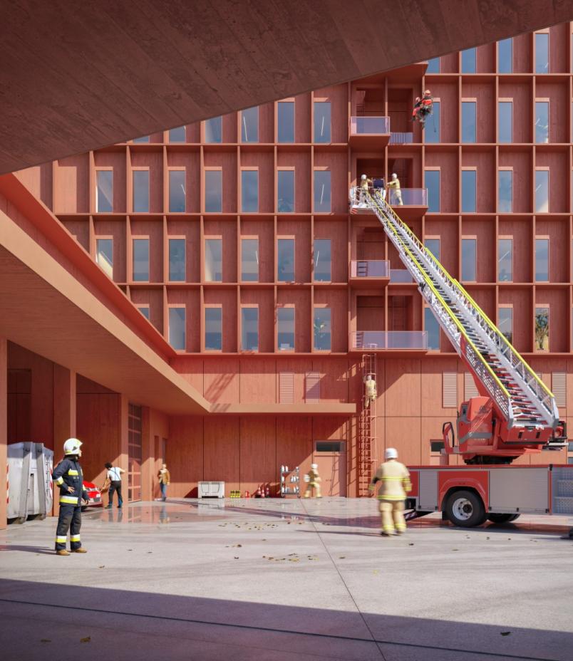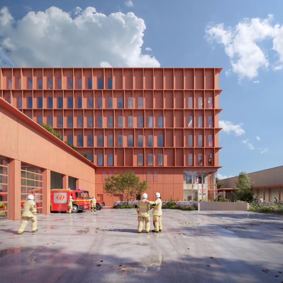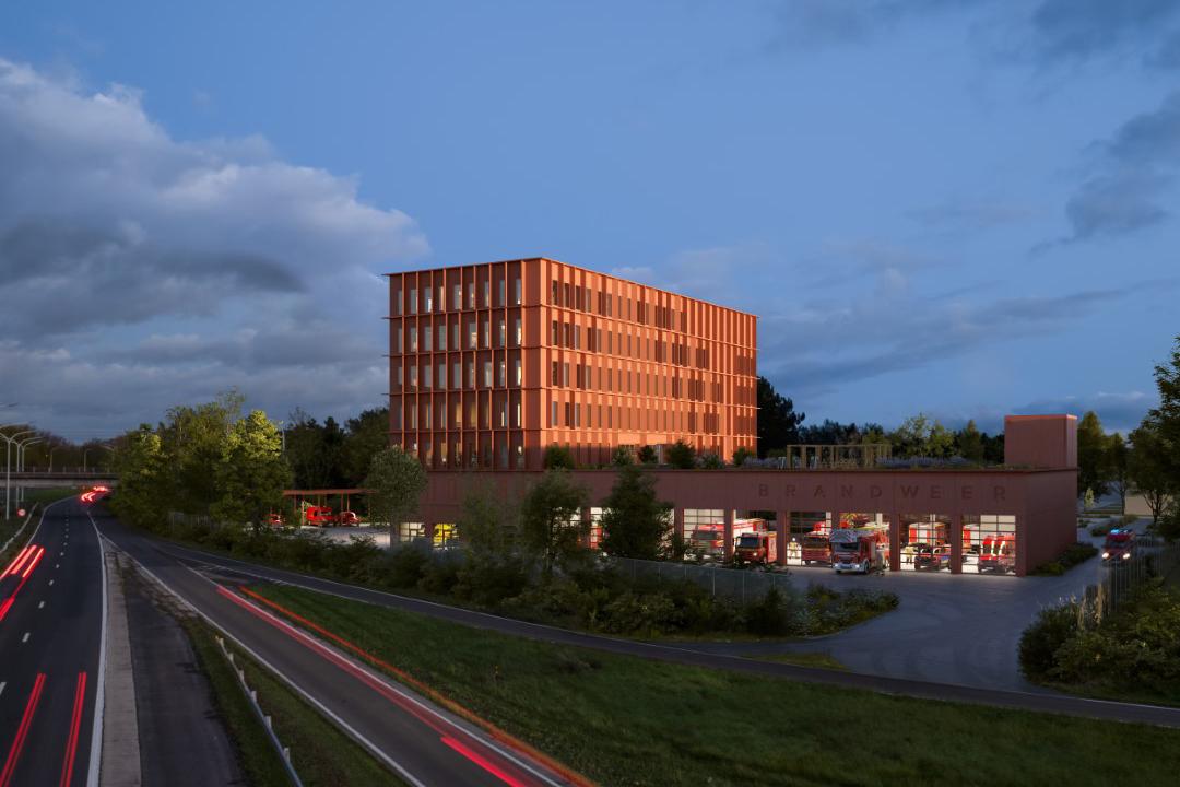 Nieuwe brandweerkazerne Brugge wordt landmark voor de stad en aangename werkomgeving voor brandweerpersoneel (dbv architecten & B2Ai)