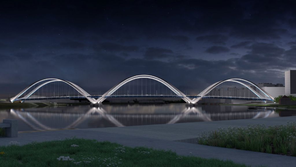 Het nieuwe bouwwerk zal bestaan uit zes rijvakken, voetpaden aan de rivierszijden en een verbeterd stormbekken. Drie grote bogen sieren het ontwerp van de brug. Die staan symbool voor de geschiedenis van de stad. Onder de brug, aan de overs, is ook nog een promenade en pier voor voetgangers voorzien.