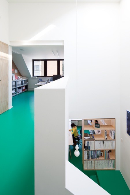 Onlangs is De Gouden Liniaal Architecten verhuisd naar hun nieuwe burelen. In het stadscentrum van Genk werd een leegstaand handelspand met bovenliggend appartement grondig verbouwd: de gelijkvloerse ruimtes werden opengebroken en ingericht als ontvangst- en vergaderruimtes, achteraan werd een heuse veranda toegevoegd. De werkruimtes liggen verspreid over de opengewerkte kamers op de verdiepingen.