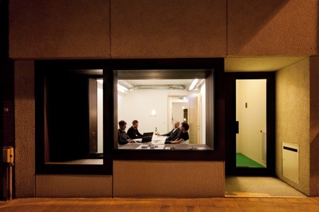 grondig verbouwd: de gelijkvloerse ruimtes werden opengebroken en ingericht als ontvangst- en vergaderruimtes, achteraan werd een heuse veranda toegevoegd. De werkruimtes liggen verspreid over de opengewerkte kamers op de verdiepingen.