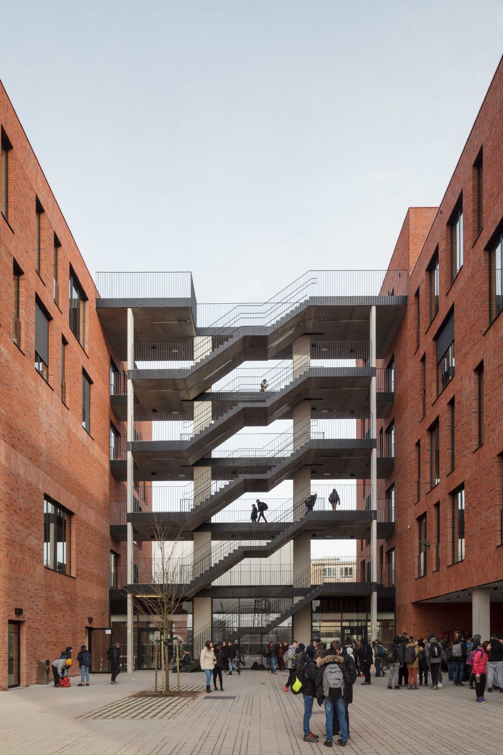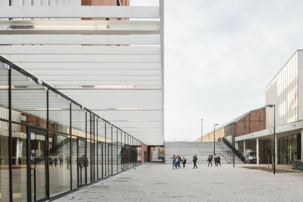 De nieuwe campus past zich in het Masterplan van West 8 voor de stationsomgeving. De campus vormt een ruimtelijk eindpunt van de groene boulevard die voorzien werd in het masterplan. Dit eindpunt wordt vorm gegeven door een langgerekte publieke ruimte tussen het nieuwe schoolgebouw en de bestaande gebouwen van het Technisch instituut Heilig Hart. Deze as wordt versterkt door luifels aan beide zijden en ruimtelijk beëindigd door een grote trappenpartij. Hier kunnen de scholieren hangen, spelen en zelfs lessen volgen.