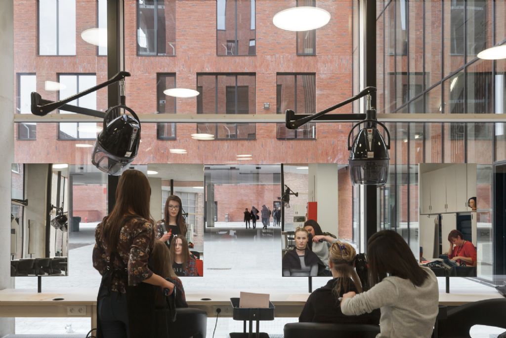 De vleugel die het dichtst bij het centrum van de stad ligt, staat open voor de meer sociale functies zoals het kapsalon en de ontspanningsruimtes. Deze kunnen ook buiten de schooluren gebruikt worden. Meer belastende activiteiten zoals de opleidingen en workshops in de hout- en bouwateliers worden aan de meest westelijke zijde van de campus georganiseerd.