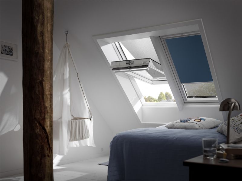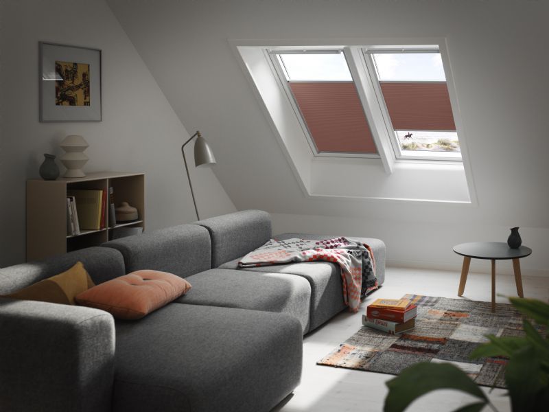 Voor een perfecte regeling van het daglicht stelt Velux zijn 2-in-1-oplossing voor: DUO. Dit voorgeassembleerde gordijn combineert een verduisteringsgordijn, beschikbaar in 24 verschillende kleurschakeringen en een wit vouwgordijn. Het biedt dus op elk moment een optimale verduistering en zorgt gedurende de hele dag voor lichttempering.