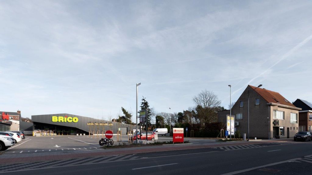 Een grote doe-het-zelfzaak wilde een nieuwe winkel bouwen langs een typisch Vlaamse straat met lintbebouwing. Geen makkelijke oefening voor Polygoon Architectuur: de bouwvoorschriften lieten slechts 40% bebouwing toe en er moest rekening worden gehouden met de noden van de aangrenzende supermarkt. Er werd gekozen om de lintbebouwing radicaal te doorbreken. Het pand werd ingebreid middenin het bestaande bouwblok als een slangvormig tetrisblok.