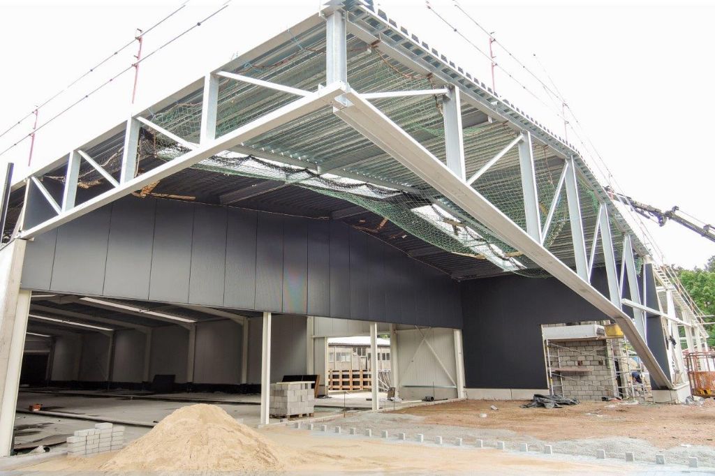 Het pand kreeg een typisch industriële vorm met een licht hellend dak waarbij de gevel aan de voorkant werd uitgesneden. Die overkraging heeft niet alleen een uitnodigend effect, maar creëert ook ruimte voor de draaicirkel van vrachtwagens die laden en lossen. Langwerpige lichtstraten werden in de nieuwe dakvlakken strategisch ingeplant. Een ongebruikt gebouw vanachter op het perceel werd in het ontwerp mee opgenomen; de nieuwe staalconstructie vooraan sluit er naadloos op aan. Het winkelgedeelte bevindt zich hoofdzakelijk in het nieuwe gedeelte, de personeelsruimtes achterin. Een overdekte buitenruimte bevat het tuin- en plantengedeelte van de doe-het-zelfzaak.