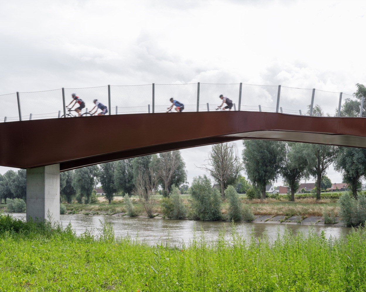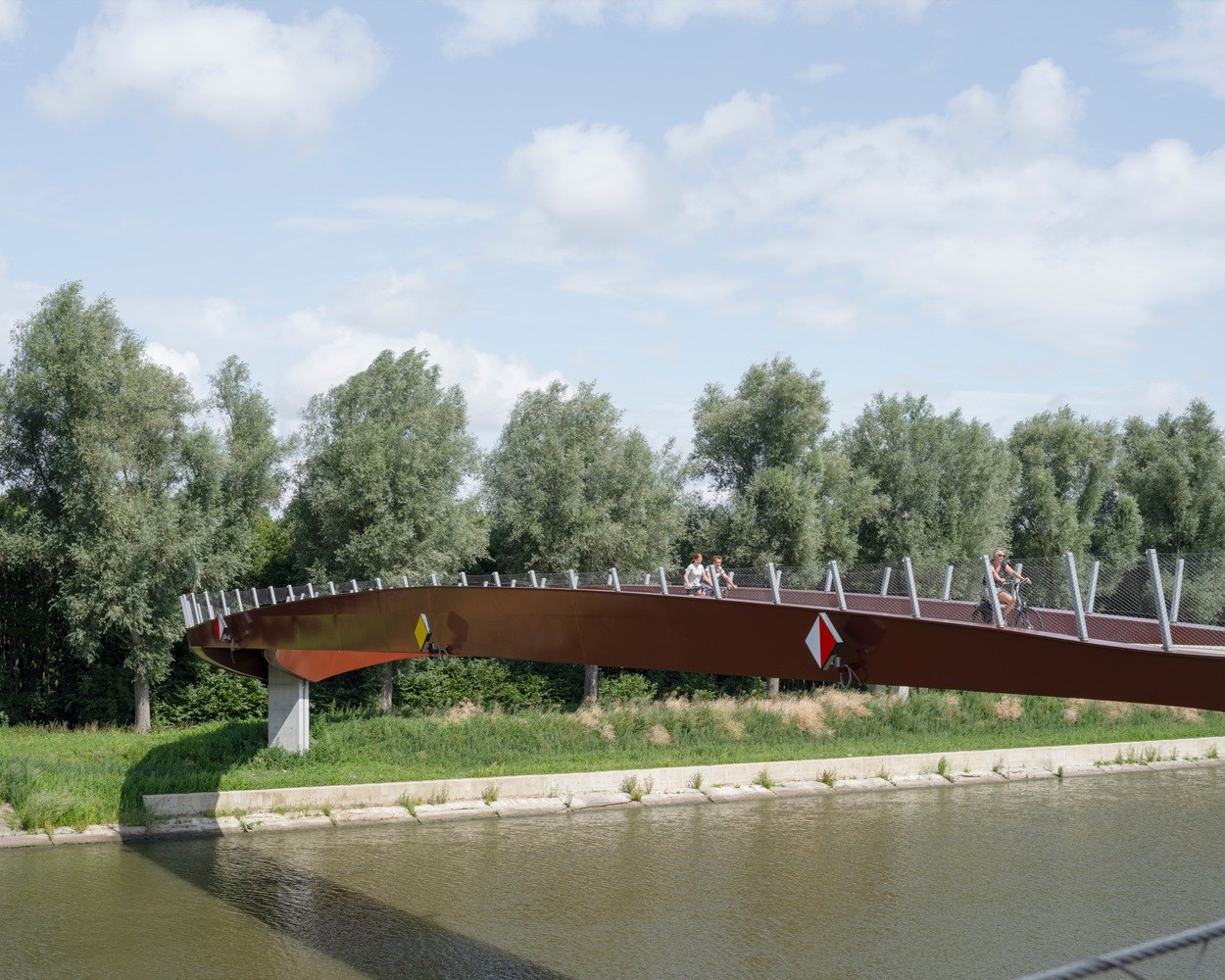 Nieuwe fietsers- en voetgangersbrug over de Leie volgt lijnen van het landschap (SBE)