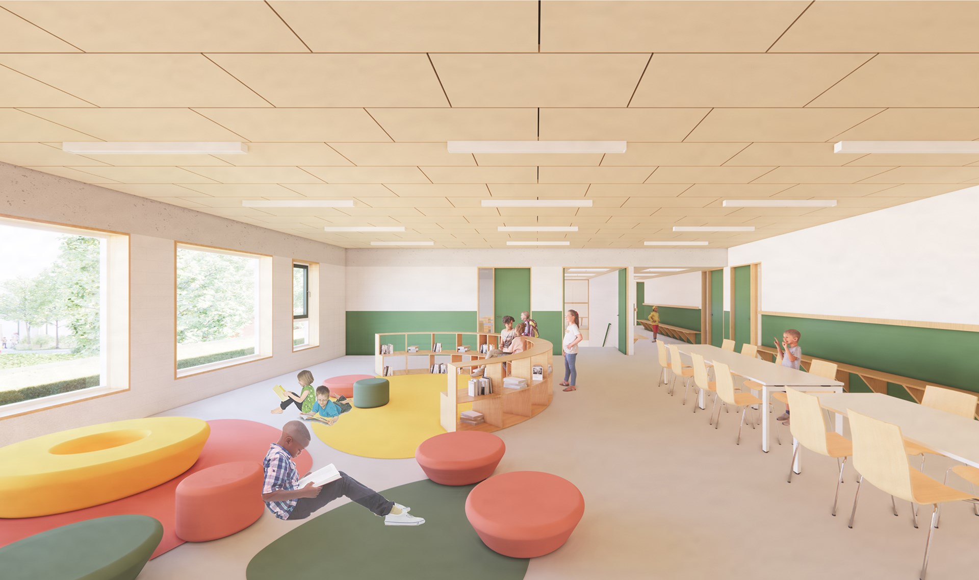 Nieuwe gemeentelijke basisschool Lievegem wordt groene, duurzame, en toegankelijke leeromgeving (Corbey Ringoir Architects)