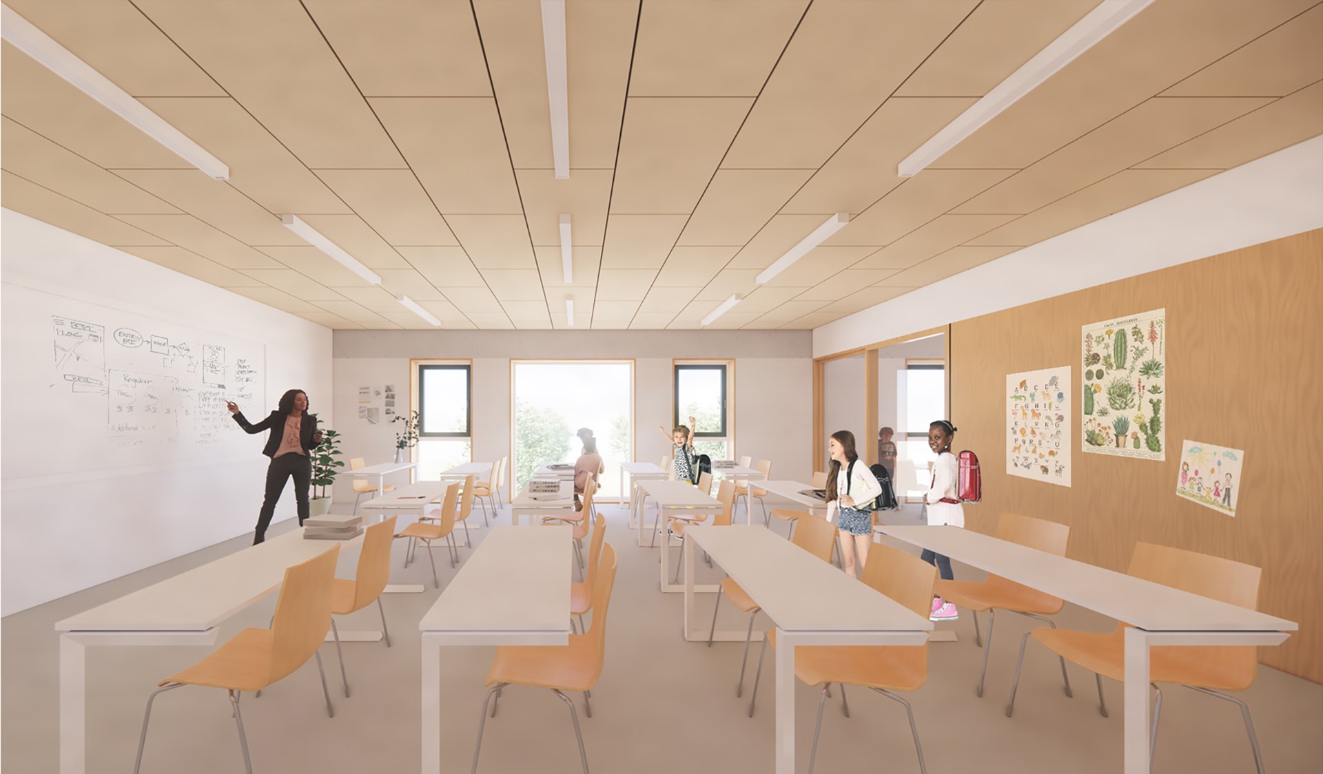 Het gelijkvloers zal plaats bieden aan kleuters en het eerste leerjaar, wat de overgang van de kleuterschool naar de basisschool soepeler zal maken. De vijf andere leerjaren zullen daarboven worden gehuisvest. De traditionele klaslokalen bevatten kleine glazen miniklasjes waar kinderen na instructies zelfstandig kunnen werken. Alle klaslokalen zullen geconcentreerd zijn rond een open leercentrum.
