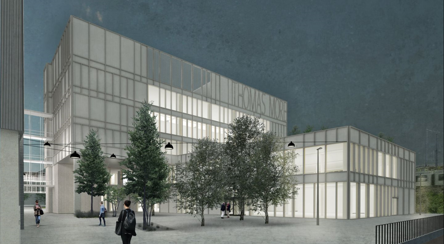 In Mechelen zijn de werken begonnen aan de nieuwbouw op de Thomas More-site van Campus De Vest. De ambitieuze vernieuwbouw, naar een ontwerp van architectenbureau Stramien cv, bevat verschillende faciliteiten zoals collaboratieve aula’s en hybride leslokalen die de hogeschool in Mechelen klaar maakt voor het onderwijs van de toekomst. Verbinding, vergroening en technologische innovatie staan daarbij voorop. De nieuwe campus wordt een ontmoetingsplek voor alle studenten en medewerkers. Gelegen aan de Dijleterrassen en de nieuwe stadsboulevard, met een eigen Utopia-straat, een gezellige foyer en prachtige daktuinen, wordt het ook een echte landmark voor Mechelen.