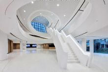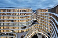 In architecturaal opzicht maakten de vele curves in het gebouw het proces veel complexer, van de eerste voorbereidende fases tot de laatste afwerkingen. Jenny Scherrer: "Een van de voornaamste moeilijkheden was de standaardisatie van bepaalde elementen in een gebouw vol organische lijnen. Daarom moesten wij productieoplossingen uitwerken die zowel esthetisch als functioneel geoptimaliseerd waren, vooral voor de verlaagde plafonds. Het atrium, dat zich uitstrekt over vier niveaus met gebogen volumes, was eveneens zeer complex. Daarnaast moesten we voor de volledige structuur van het gebouw werken met nagespannen vloerplaten met een minimale dikte en kregen we te maken met een zeer uitgesproken hellingsgraad van het dak (negen verdiepingen aan de ene kant van het gebouw, zes niveaus aan de andere kant), wat een zeer grondige stabiliteitsstudie vereiste."