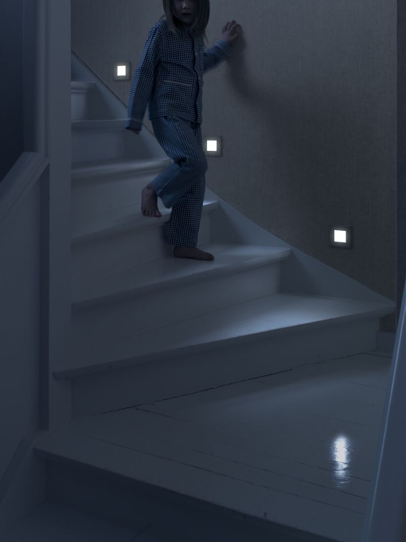 Als laatste biedt Niko nog een product met veiligheid op het oog. Het bedrijf introduceert oriëntatieverlichting die langs de trap, hal of gang kan worden ingewerkt, zodat deze donkere plaatsen ’s nachts verlicht worden en er geen ongelukken gebeuren. De ledverlichting brandt dankzij een bewegingsdetector alleen als er iemand in de ruimte aanwezig is, zodat er stroom bespaard wordt. De verlichting is ook beschikbaar met een noodbatterij die voor een blijvende verlichting moet zorgen, ook tijdens stroompannes.