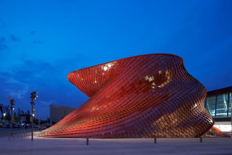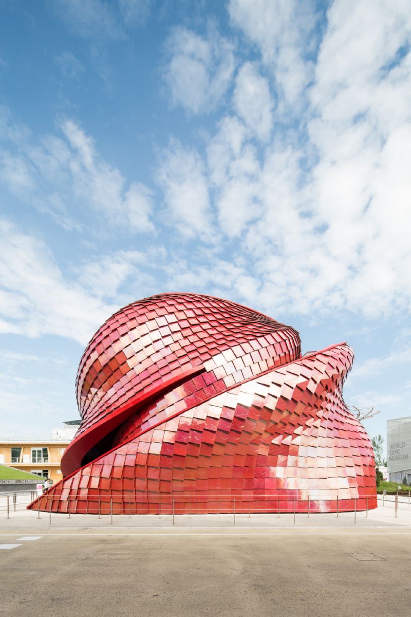 Het nieuwe Vanke Paviljoen op de Expo Milano trekt enorm veel bezoekers dankzij zijn vreemde vormen. Voor het ontwerp verdiepte Libeskind zich duidelijk in de Chinese mythologie: de constructie doet op het eerste gezicht denken aan een liggende draak. De keuze voor die mythologische reus is toe te schrijven aan de Chinese bouwheer. In het kader van ‘Feeding the Planet, Energy for Life’, koos Libeskind voor de draak. In totaal is het gebouw zo een 800m2 groot. De constructie wervelt in een spiraal naar boven om zo te eindigen in een dakterras. Die draaibeweging trekt Libeskind eveneens door naar het ontwerp aan de buitenkant: ook aan de buitenkant is een spiraalvormige toegang tot het gebouw. 4800 keramische tegels bedekken de constructie en vormen zo de metaalglanzende schubbenhuid van de liggende draak. De binnenzijde van het paviljoen ontwierp Libeskind onder het motto ‘Community through food’ en is opgevat als een nieuwe interpretatie van de ‘shitang’, de traditionele Chinese eetruimte. Talrijke bamboe-elementen sieren wanden en plafonds, vergezeld van afbeeldingen van typische Chinese gerechten. In de sanitaire ruimte domineert het design van Duravit: toiletten uit de DuraStyle en Darling New reeksen zorgen voor comfort. De tijdloos moderne vormgeving van de Starck 3 wastafels – een rechthoek met een omlopende rand voor de wandaansluiting – plaatst accenten zonder overdaad.