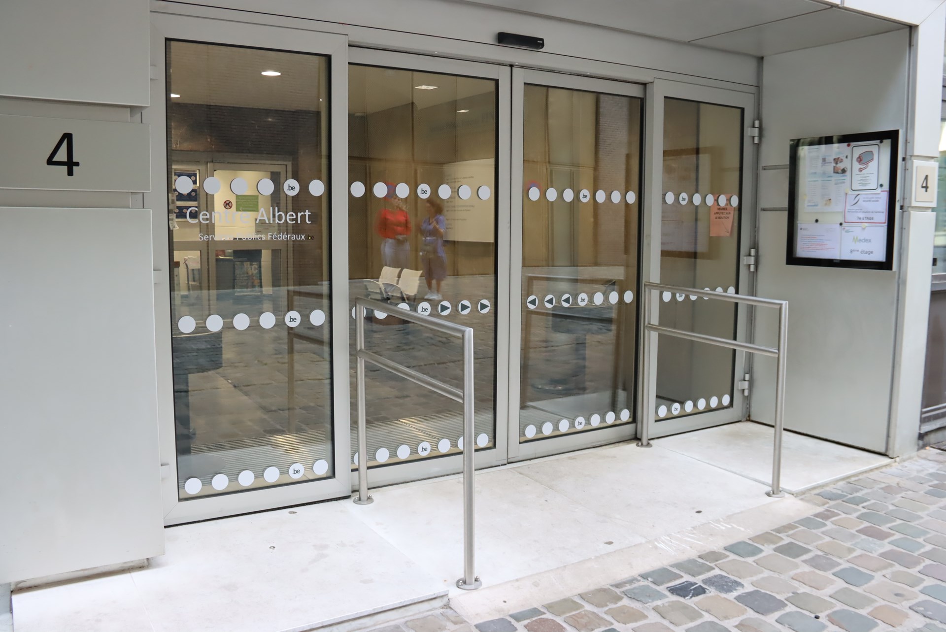 In augustus 2023 heeft de Regie der Gebouwen bijkomende werken laten uitvoeren om een uitstekende toegankelijkheid te bekomen. Het betreft onder andere de plaatsing van duidelijke vignetten en signalisaties aan de inkom van het gebouw, een contrastrijk nieuw gebouwnummer, de plaatsing van een aan PBM aangepaste mat en klapstoelen in de inkomhal, maar ook de plaatsing van kleefstroken en stroken voor het vergroten van de waakzaamheid aan de brandtrappen.