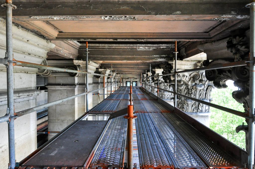 Er werd bijkomend onderzoek verricht, zodat men de meest ideale behandeling kan toepassen. Daarnaast wordt ook streng gewaakt over de veiligheid van het gebouw. De stenen die zouden kunnen vallen worden preventief geconserveerd met glasvezelstaven en epoxymortel. Verdwenen elementen van de kroonlijst worden opnieuw gebeeldhouwd. Voorts worden met radar al de interne metalen elementen opgespoord en roestwerend behandeld om gevolgschade te voorkomen.