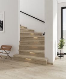De trappen zijn verder uit te breiden met ingebouwde ledverlichting, wat zowel een streling voor het oog als ontzettend praktisch is. Daarnaast heb je de mogelijkheid om bijpassende vloeren, plinten of andere accessoires te kiezen. Met de COREtec®-onderhoudskit houd je jouw trap gemakkelijk in topvorm.
