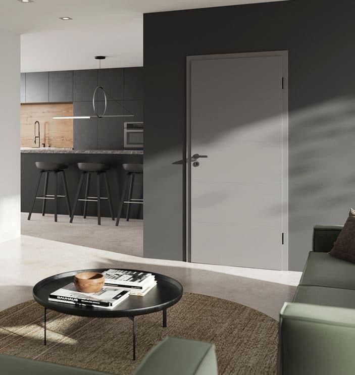 Grijstinten winnen alsmaar aan populariteit omdat ze in veel interieurs thuis zijn en tegelijkertijd zorgen deze voor een originele toets. Hörmann zet volop in op de nieuwe trendkleur ‘Dusty Grey’, een eerder discrete en rustige grijskleur die bij uiteenlopende stijlen past. De kleur Dusty Grey is verkrijgbaar voor houten binnendeuren in de uitvoeringen BaseLine en DesignLine en combineert zeer gemakkelijk met een aantal meer uitgesproken accentkleuren, zoals het matzwarte beslag ‘black.edition’.