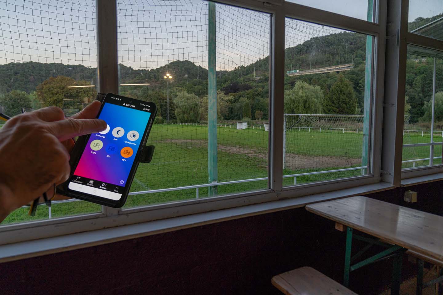 Met Schréder ITERRA kan de club de verlichting op afstand bedienen met een app. Het Schréder ITERRA GATEWAY Light-systeem verbindt het ITERRA-besturingssysteem met de cloud via een lokale Bluetooth 5.0-verbinding. De GATEWAY vangt het bluetoothsignaal van Schréder ITERRA op en stuurt het naar de cloud om de verlichting van eender waar te kunnen bedienen met de gratis Schréder ITERRA-app.
