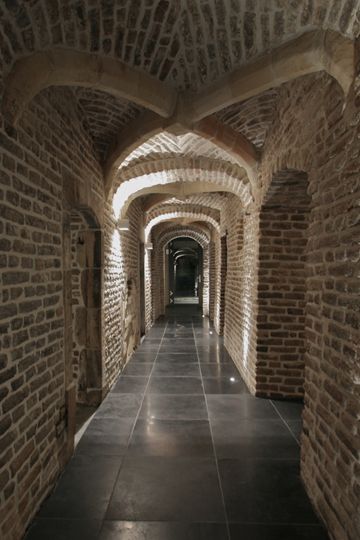 Ook in het nieuwe gedeelte zijn heel wat plafonds opgetrokken met nieuwe bakstenen. Op deze manier refereren Dreessen architecten naar de oude bakstenen gewelven van de brouwerij.