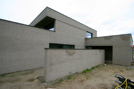 De gevel is opgetrokken in de lichtgrijze Argentis-steen van de Vandersanden Group