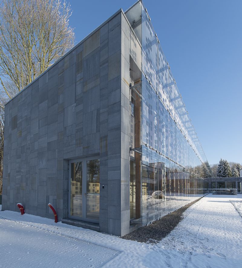 De keuze van de materialen en de technieken voor de vleugel werden grondig onderzocht, voor een optimale milieubalans op lange termijn, zowel op het vlak van de bouw (grijze energie, recycleerbaarheid, koolstofbalans, duurzaamheid), als op het vlak van het energieverbruik (CO2, SO2, water, …)
