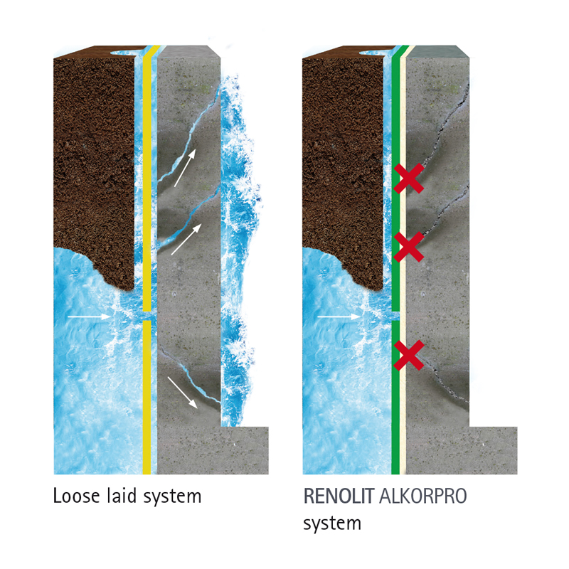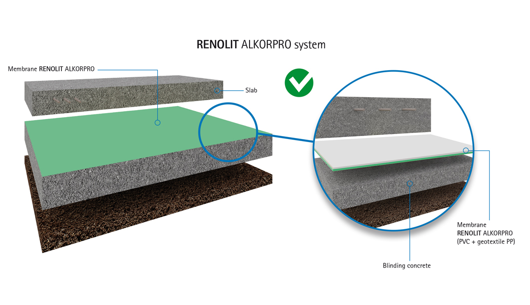 RENOLIT ALKORPRO werd ontwikkeld met behulp van de jarenlange ervaring en technologische kennis van RENOLIT ALKORPLAN. Precies daarom is het veelzijdig, doeltreffend én veilig. Het nieuwe systeem kwam er door de vraag naar een specifiek product voor funderingen en vervolledigt zo het gamma van de RENOLIT ALKORPLAN PVC-afdichtingen. Deze nieuwe generatie volvlakkig verkleefde membranen met uitzonderlijke afdichtingskwaliteiten is speciaal ontworpen voor het waterdicht maken van funderingen, kelders, tunnels, ondergrondse parkings en alle andere ondergrondse, betonnen constructies. Kortom, voor elke betonconstructie die beschermd moeten worden tegen grondwater, verontreinigingen of gassen zoals radon biedt RENOLIT ALKORPRO een oplossing.