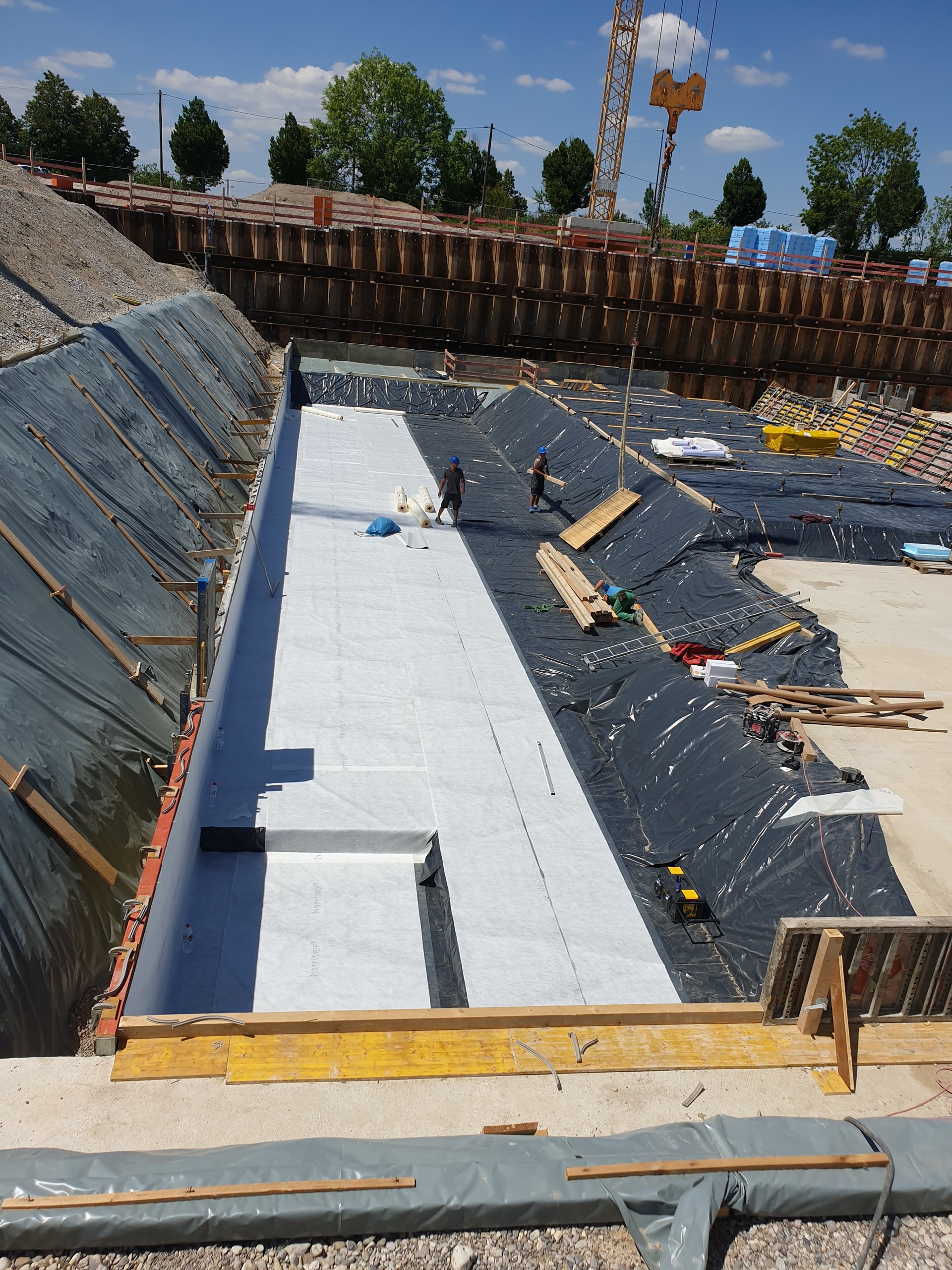 De voordelen zijn opmerkelijk. Wanneer dit membraan in contact komt met beton, hecht het weefsel zich vast in het beton en vormt het één geheel. Bovendien is het membraan voorzien van een speciale superabsorberende polymeerlaag (SAP) die opzwelt bij contact met water. Een extra veiligheid bij waterindringing mocht het beton ooit barsten of scheuren. Zo krijg je een uiterst efficiënt afdichtingssysteem dat voorkomt dat, in het geval het membraan zou worden doorboord, er water door zou sijpelen. Axel Augustin, International Product Manager van RENOLIT ALKORPRO, legt uit: “Bij bijzonder veeleisende projecten adviseer ik om de RENOLIT ALKORPRO technologie te gebruiken, omdat deze garant staat voor een absoluut veilige waterafdichting met een waterdrukweerstand tot 5 bar.” Het membraan kan geïnstalleerd worden in alle weersomstandigheden (van -5°C tot +60 °C), heeft geen beschermlaag nodig en kan rechtstreeks op de ondergrond worden aangebracht.