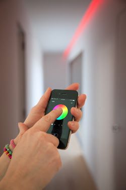 De verschillende lichtopties vereisen een speciale schakelaar. Ook die stak Niko in een nieuw jasje. De draadloze RGB(W)-bediening is nieuw. Met de zesvoudige toets kun je een kleurverloop kiezen, dimmen, automatisch starten, versnellen en vertragen. De schakelaar is uitgerust met zes icoontjes en is makkelijk te installeren in verschillende afwerkingen. Je kunt er ook voor kiezen om je verlichting via de wifi-verbinding van je smartphone te bedienen. De gratis app van Niko, Color Control, kan je lichten instellen en de standen automatisch opslaan. Niko heeft ledverlichting in al zijn aspecten duidelijk omarmd.