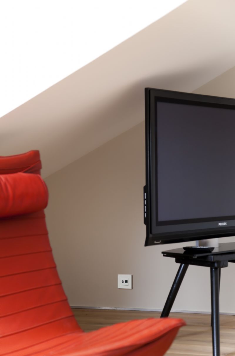 Wie kiest voor digitale televisie, heeft vandaag de dag achter het toestel minstens drie contactpunten nodig. Het gaat dan om een tv/fm-contactdoos, een RJ-45-contactdoos en nog enkele stopcontacten. Vanaf nu kan de tv-fm-contactdoos worden vervangen door de nieuwe RJ45-coaxaansluiting van Niko. Daardoor komt er ruimte vrij voor een extra stopcontact waar een ander apparaat kan worden ingestoken.