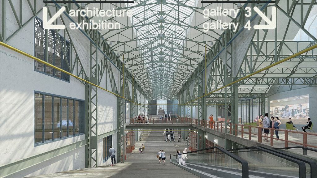De grote binnenstraat in het gebouw leidt naar drie grote ‘dozen in een doos’ in de voormalige werkplaatsen. Daar komen respectievelijk het museum voor moderne en hedendaagse kunst, een architectuurinstituut en een auditorium met 400 zitplaatsen. De tentoonstellingsruimtes van het museum zijn verspreid over vier niveaus.