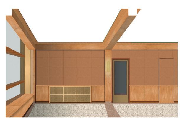“In de vormgeving van het interieur gaan we op zoek naar bepaalde kleurstellingen. De deuren en de trap zijn in donkere beits, dat refereert naar de donker gekleurde deuren in het museum. Qua materiaal werken we met leder en terrazzo (ter plaatse gegoten beton die gepolierd wordt in twee kleuren). Het leder zorgt mee voor een akoestisch comfort in de ruimte. Het plafond willen we een felle kleur geven. De wanden zijn bekleed met fineer en goudkleurige accenten. Verder zal het interieur een rijkelijk aandoende en gedetailleerde ruimte zijn die rust en concentratie moet uitstralen.