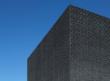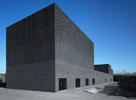 De vorm komt grotendeels voort uit de functie van het gebouw en werd uitgepuurd om een strak geometrisch volume te bekomen. Maar het is meer dan een strakke, gladde doos: het gebruik van verschillende metselwerkverbanden geeft de gevel een rijke, gevarieerde structuur. De verschillende soorten metselwerkverbanden en de plaats ervan in de gevel is een zorgvuldig uitgekiende keuze. In de monolithische plint vervult het metselwerk een dragende functie, bovenaan laat het luchtiger maaswerk van bakstenen openingen vrij voor ventilatie van de technische ruimten. Op andere plaatsen is de gekozen textuur dan weer puur esthetisch. Architectura.be heeft in samenwerking met Wienerberger 5 exemplaren van het boek Brick 12, met onder meer dit project in, te geef.