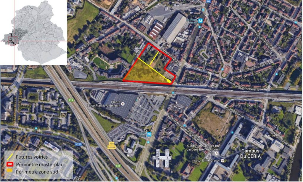 Voor de herontwikkeling van dit huizenblok is een masterplan opgesteld dat de site opdeelt in twee zones van elk ongeveer 1 hectare. Het ontwikkelingsschema voor de hele site stelt immers verschillende bestemmingen voor: een kmo-park, geconventioneerde koopwoningen, studentenwoningen, winkels en een voorziening. Bedoeling van het masterplan is om deze verschillende bestemmingen met elkaar te vervlechten dankzij een harmonieuze inplanting. Het geheel moet ook perfect passen in de bestaande geografische en sociaal-economische context en tegelijk een nieuw ijkpunt in de wijk vormen.