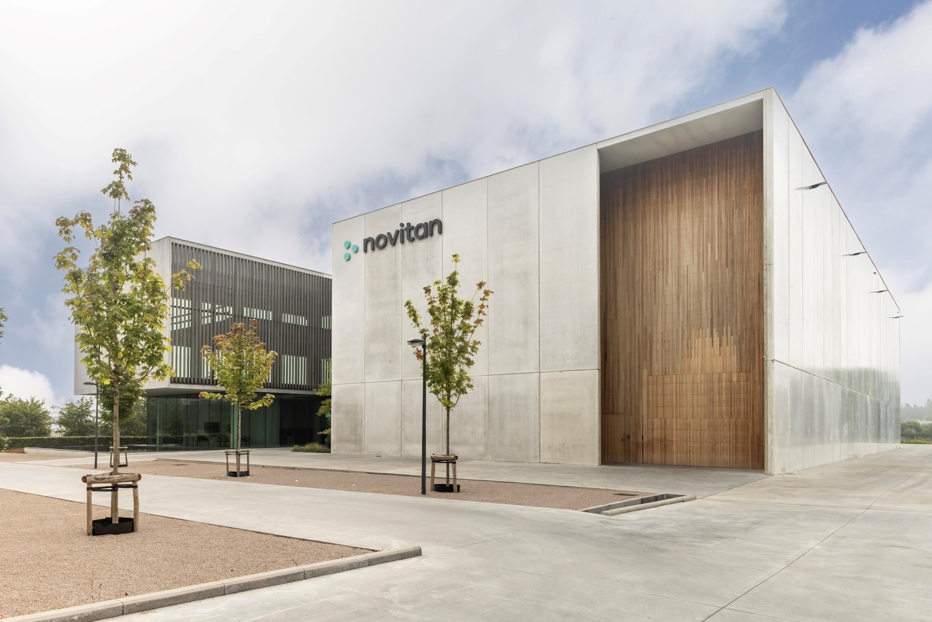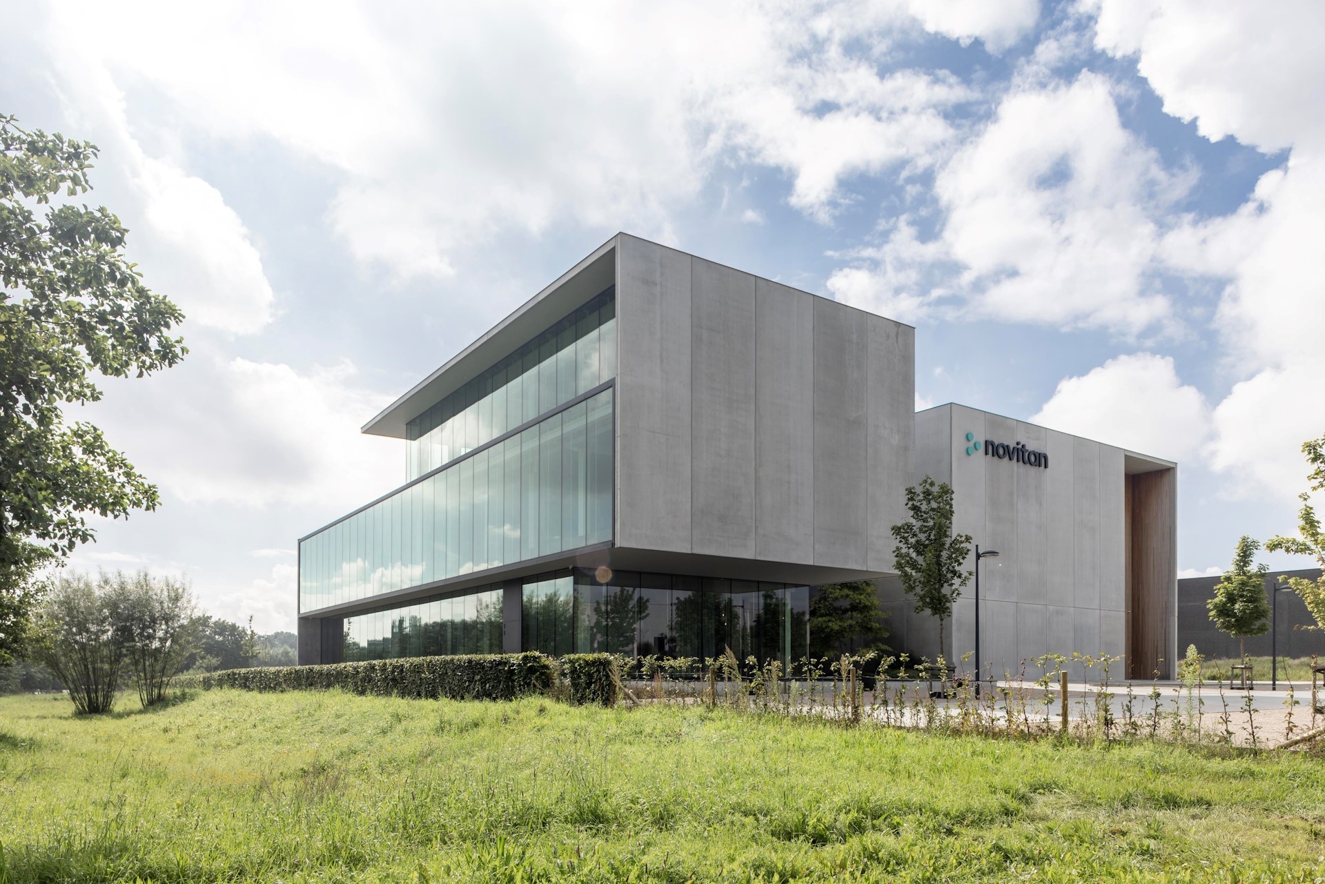 Farmaceutisch bedrijf Novitan nv beschikt sinds enkele jaren over een opmerkelijk nieuw kantoor met bijhorende loods op het Evolis bedrijvenpark in Kortrijk. Binnen het ontwerp van Govaert & Vanhoutte Architects bv was een grote rol weggelegd voor prefab beton. De gigantische verticale prefab panelen - in combinatie met hout en grote raampartijen - doen het geheel uitstijgen boven de traditioneel steriele aanblik van een bedrijvenpark. “Dit moderne, warme ontwerp is duidelijk veel meer dan de typische, klinische betonnen doos die je vaak op bedrijvensites vindt”, vertelt architect Damiaan Vanhoutte.