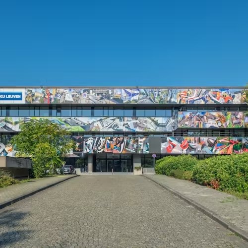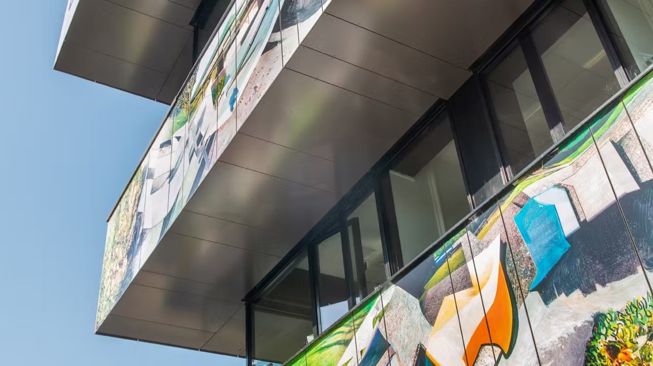 “We hebben gekozen voor een speels ontwerp door af te wisselen in de breedte van de gevelplaten. Dit zorgde voor een dynamische uitstraling die niet afgestemd hoefde te worden op de bestaande raamritmiek,” vertelt Dekoning. “Achteraf werd het kunstwerk – dat eerder al te bewonderen was op doeken – opnieuw rechtstreeks op de panelen aangebracht via stickers en een brandveilige folie. Hierdoor ontstond een gevelbeeld dat zowel visueel interessant als praktisch uitvoerbaar was.”