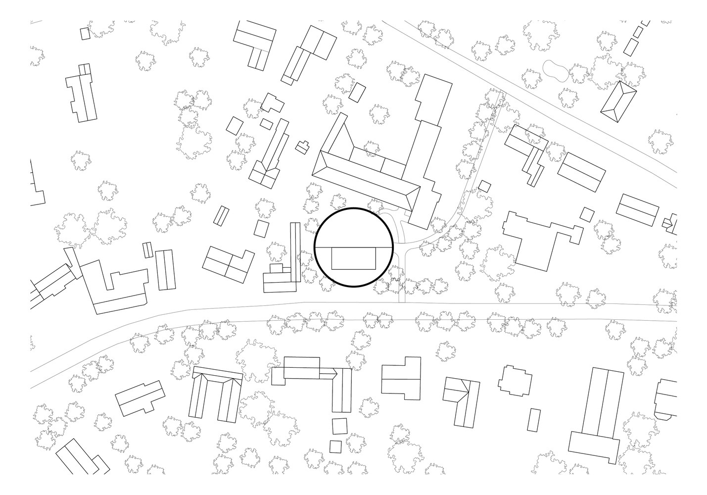 De bibliotheek is strategisch gepositioneerd als onderdeel van een cluster van publieke gebouwen en het omliggende gemeentebos. Deze opzet versterkt de connectiviteit binnen het dorp en integreert de bibliotheek naadloos in haar groene omgeving. De architecten hebben bewust gekozen voor een ontwerp dat een open verbinding biedt met de natuur, met de leestuin als intieme groene kern van het gebouw.