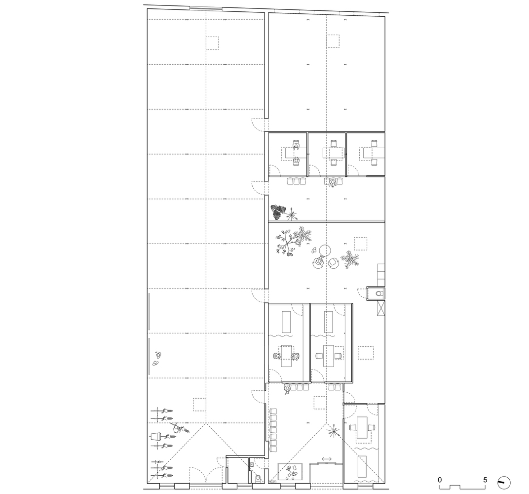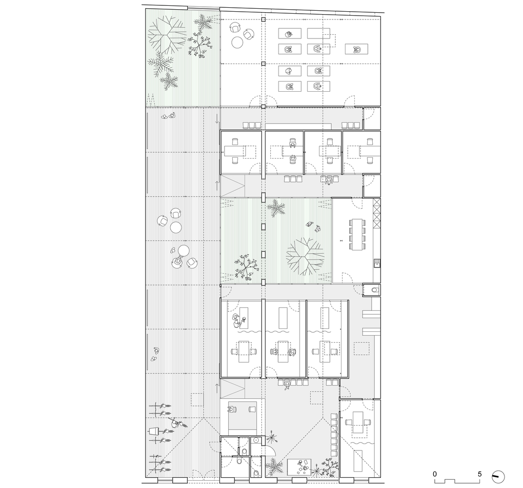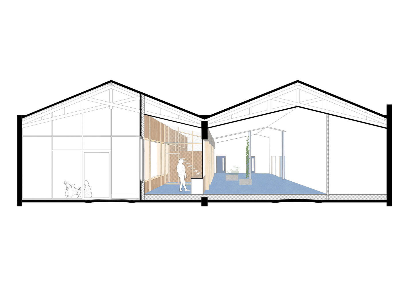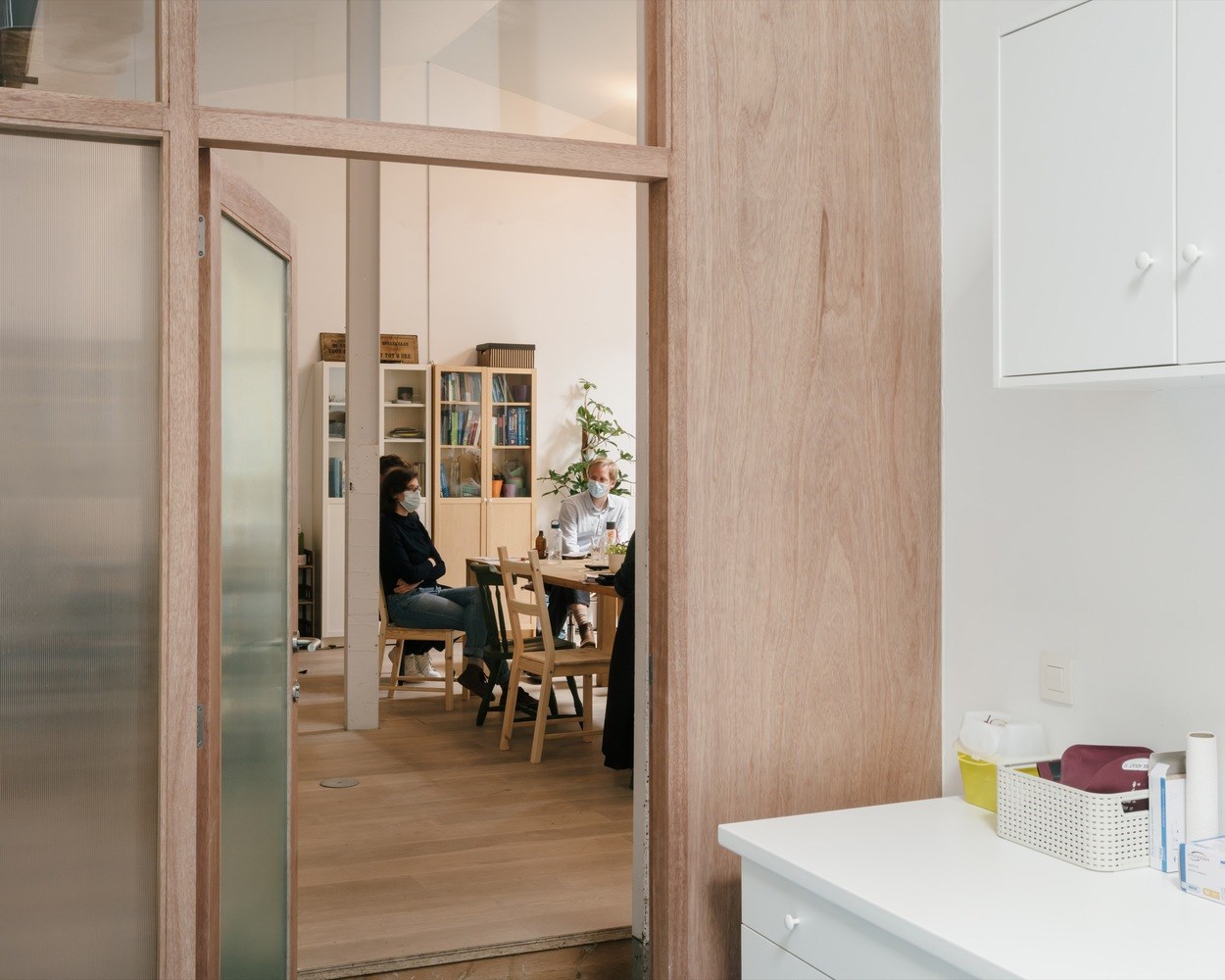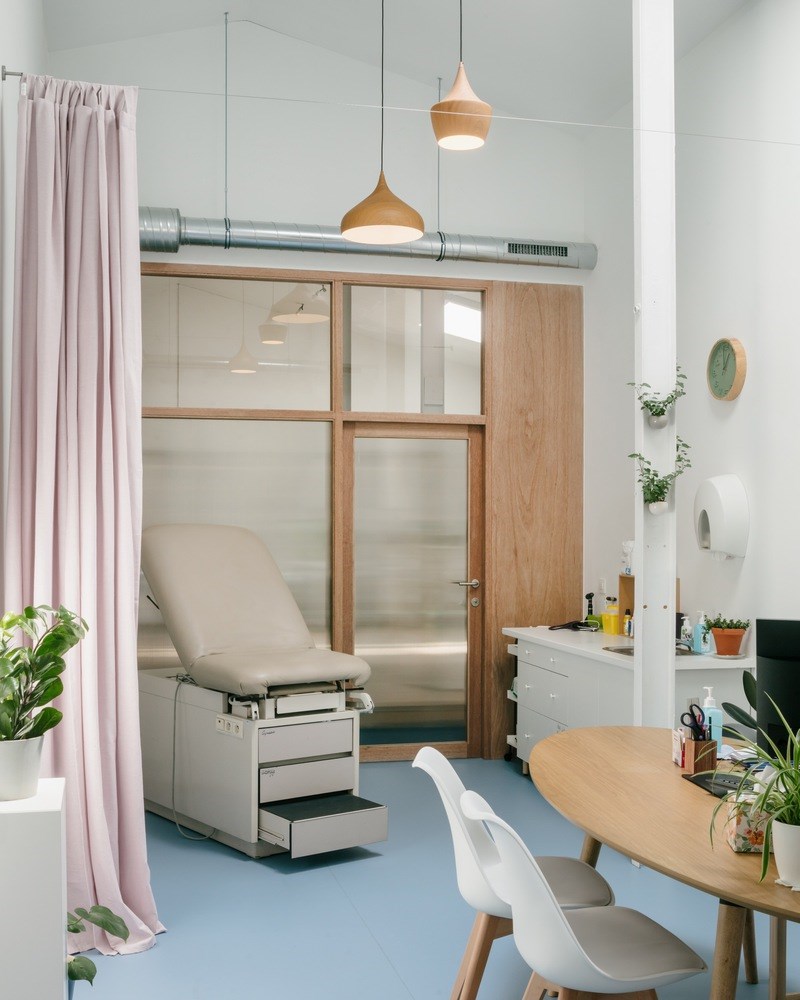 De medische praktijk wil een gemeenschap creëren rond gezondheidszorg, en erkent het belang van een zorgzame omgeving voor welzijn. Een enfilade van ruimtes, allemaal verbonden met de binnenstraat - een beschutte herinterpretatie van de ‘openbare weg’ - vormt een flexibel kader voor diverse programma's gebaseerd op menselijke interactie.