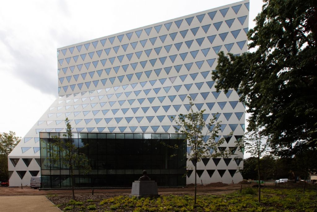 Het voormalige breed geschoeide complex heeft plaats gemaakt voor een compact vrijstaand volume. Het grotendeels verharde privéterrein is nu een openbaar park dat samen met het Harmonie- en Albertpark één doorlopende groene ruimte vormt. De onderste bouwlagen van het nieuwe gebouw vormen in plattegrond een zuivere kruisvorm. Het nieuwe hoofdgebouw staat dwars over de bestaande voorbouw waardoor het frontale karakter is verbroken en de continuïteit van het park maximaal is.