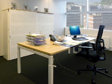 De bureauruimtes zijn ingericht met ergonomisch meubilair: de bureaus zijn in hoogte verstelbaar en kunnen eenvoudig aangepast worden aan de behoeften van de verschillende arbeidsprocessen. De laterale en frontale scheidingswanden blijven echter steeds op dezelfde hoogte, wat zorgt voor visuele rust en extra privacy, zonder interactie tegen te gaan.