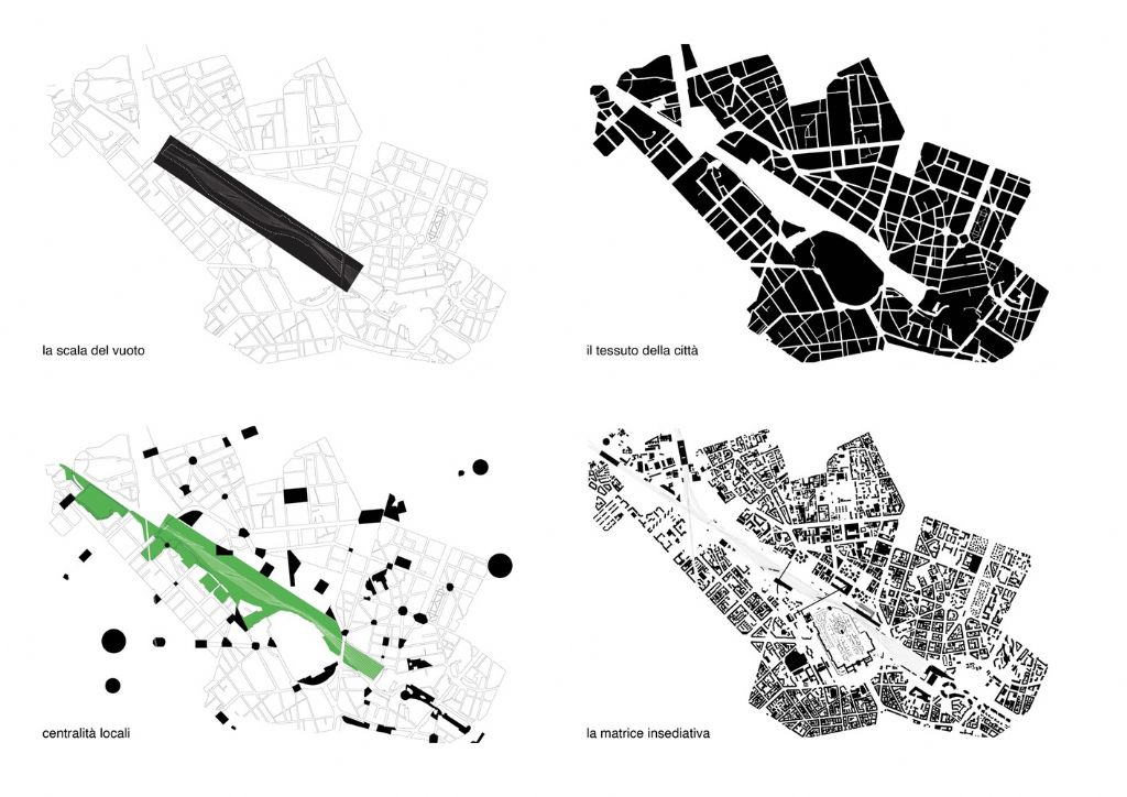 Het winnende voorstel wijst de Scalo Farini-site en San Cristoforo-site aan als respectievelijk groene zone en blauwe zone. Beide zones werken als ecologische filters. Daarbij fungeert de groene zone als een uitgestrekt park dat warme zuidwestelijke winden koelt en giftige lucht zuivert. De blauwe zone reinigt het grondwater en creëert op die manier een landschap voor zowel mens als dier. Deze twee zones regenereren dus de ecologie van Milaan door middel van schone lucht en schoon water.