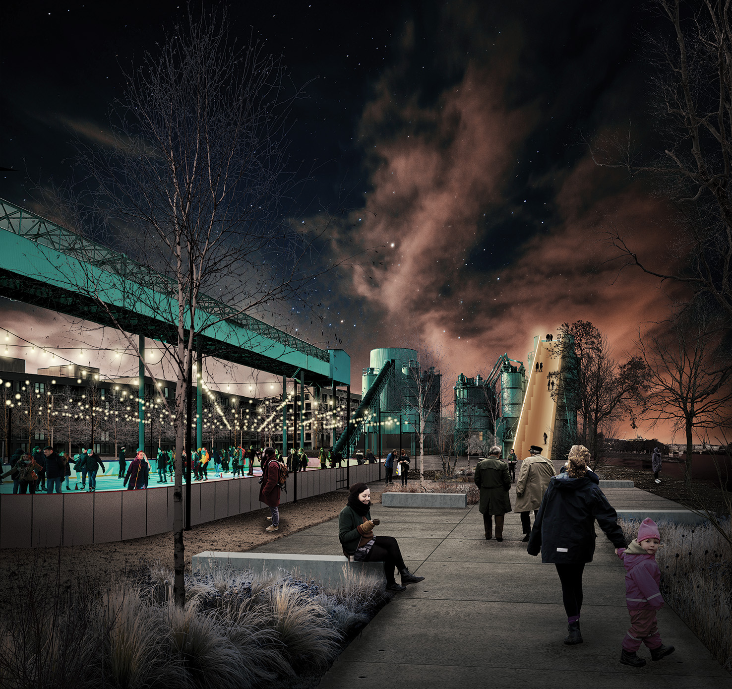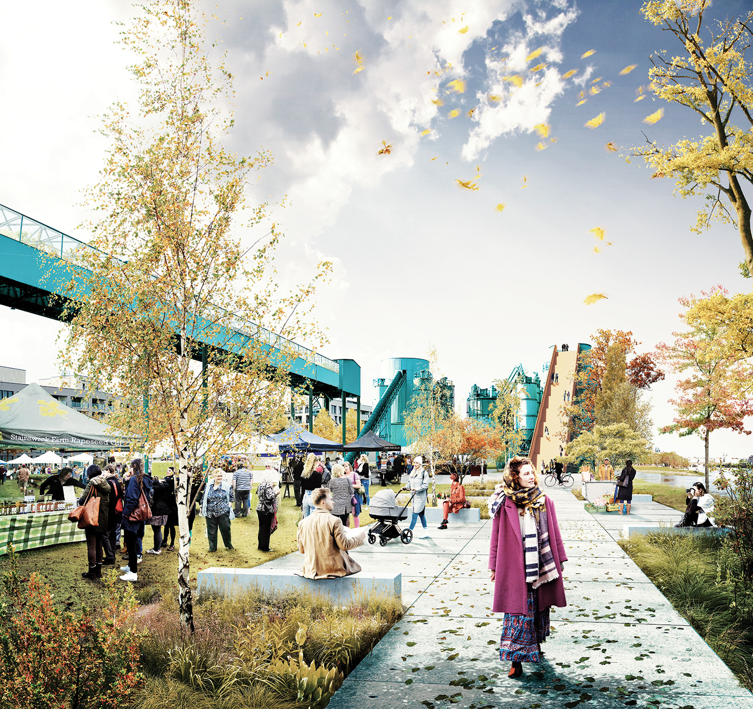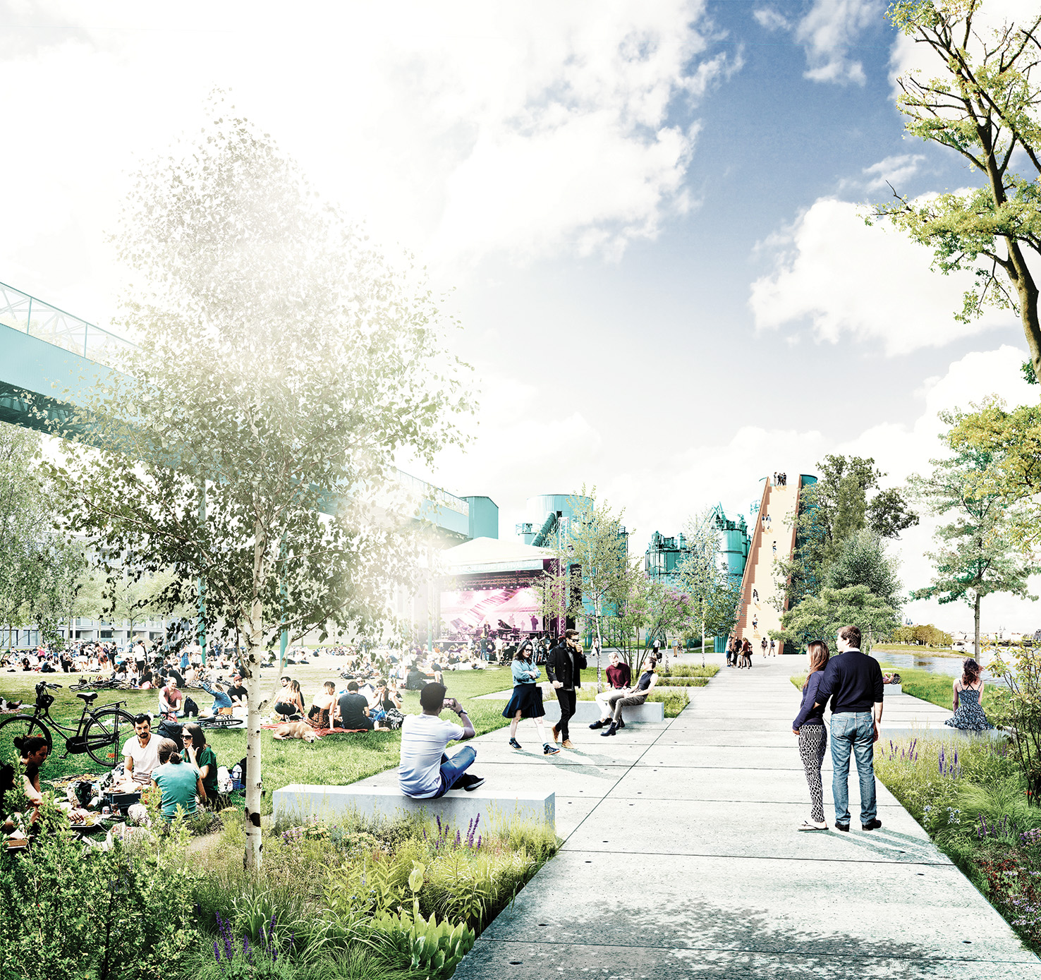 Het klimaatpark versterkt de historische gelaagdheid van de projectzone door de uitbouw van een blauwgroene parkstructuur met diverse stedelijke parkkamers. De parkkamers bieden een breed scala aan parkfuncties. Het toekomstig park krijgt een gevarieerde invulling die gaat van wilde natuurontwikkeling tot het behoud van sporen uit het verleden. De ogenschijnlijke paradox tussen postindustriële relicten, wilde natuur en een doorgedreven verwijzing naar een stedelijke voedselstrategie legt het fundament voor een gevarieerd park op maat van de mens en de natuur.