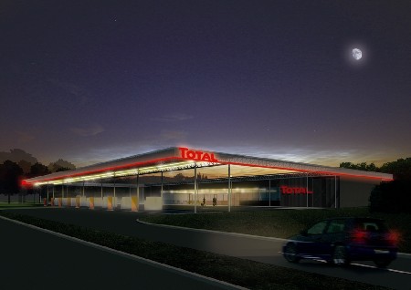 Total Belgium heeft de offertewedstrijd voor het ontwerp en de realisatie van twee tankstations in Nazareth en twee bewaakte vrachtwagenparkings in Kruishoutem gewonnen. Het ontwerp van OMGEVING, opgemaakt in nauwe samenwerking met Total Belgium, gaat uit van een slimme ruimtelijke en verkeerskundige organisatie van de sites, waarbij de traditionele landschapskenmerken bepalend zijn voor de inplanting van de voorzieningen, de architectuur van de gebouwen en de omgevingsaanleg.