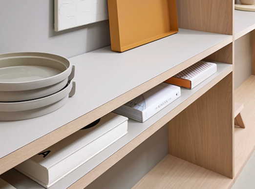 De flexibiliteit van Furniture Linoleum maakt het geschikt voor uiteenlopende toepassingen, van vlakke panelen tot gebogen oppervlakken en ronde randen. Daardoor ontstaat een naadloze, uniforme uitstraling zonder zichtbare verbindingen. Het materiaal wordt vaak gebruikt bij maatwerkmeubilair zoals bureaus, kasten, keukens en schapsystemen, waarbij het zachte oppervlak ook bijdraagt aan een aangename gebruikerservaring.