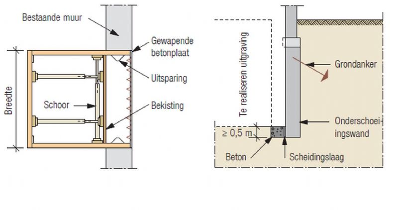 Ondermetselen of onderschoeien van bestaande funderingen