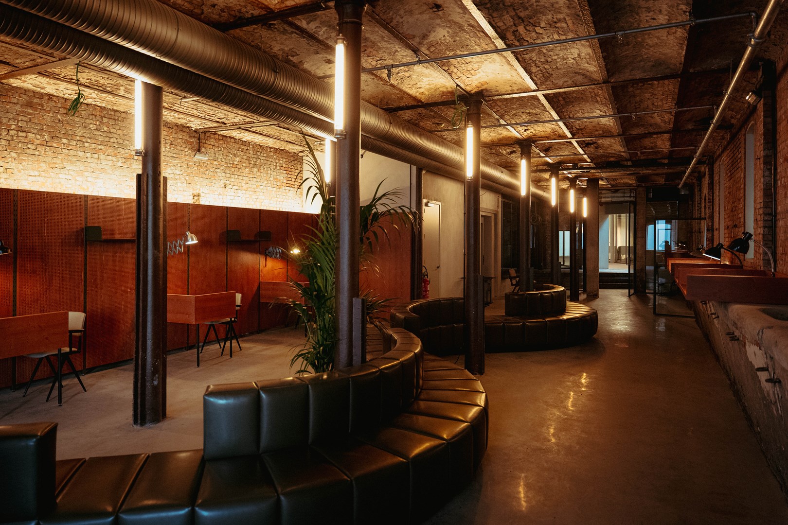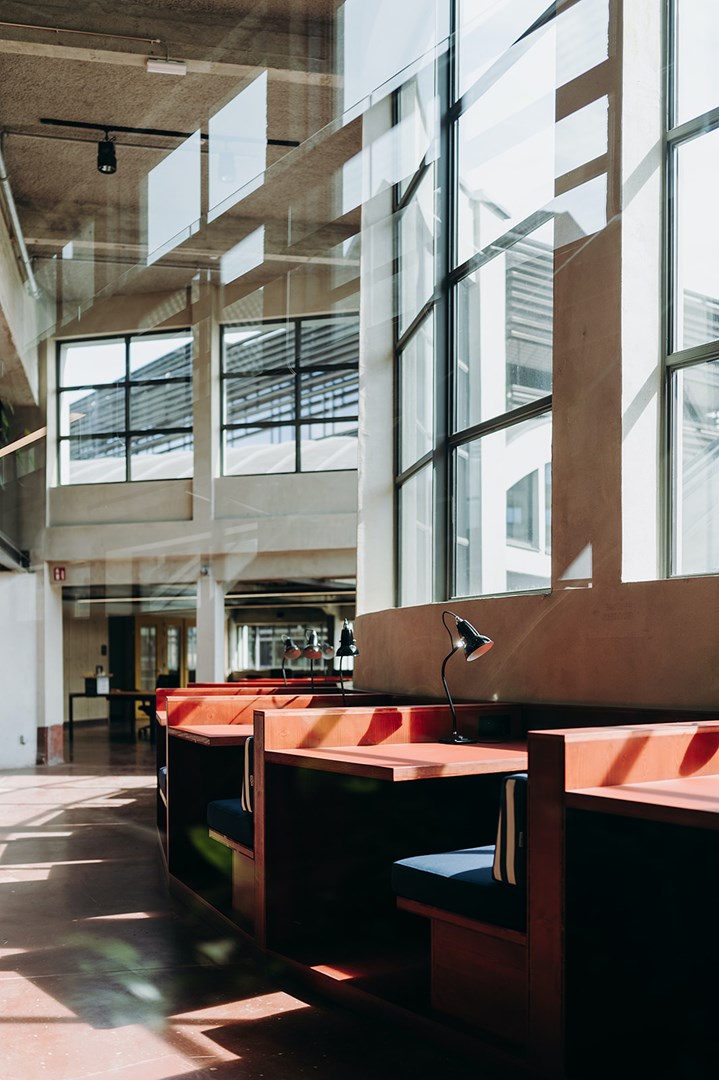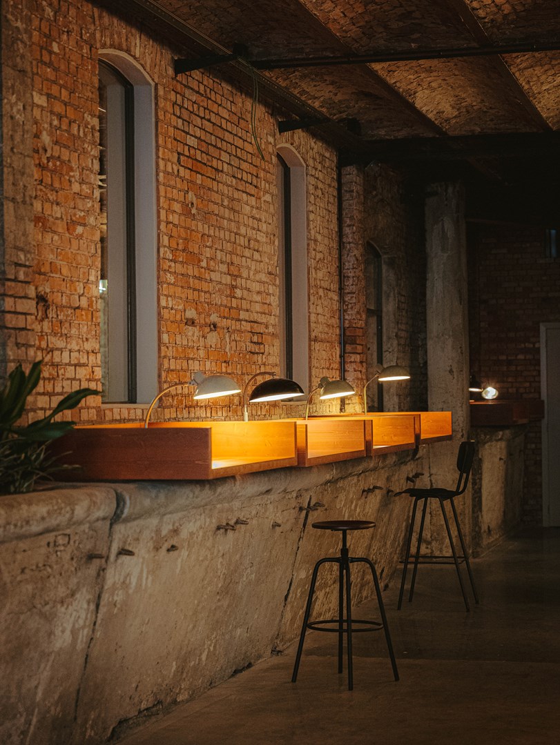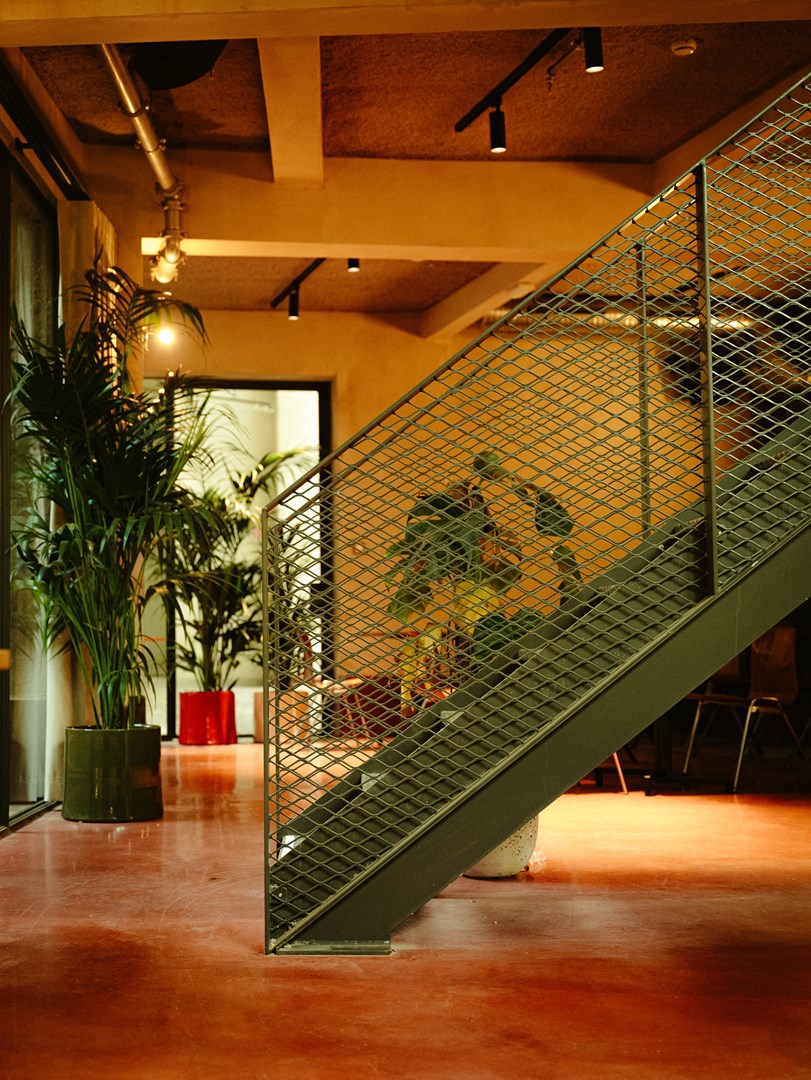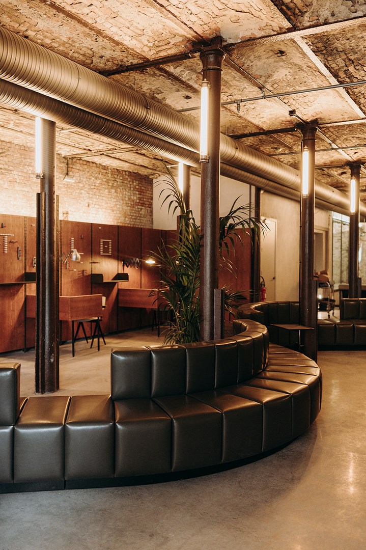 Daarnaast ontwierp het team twee horecagelegenheden: een sushirestaurant op de eerste verdieping en het centrale café, Bar Bougie, met zicht op de Arena. Bar Bougie is gevestigd in de voormalige smeerput van de garage en combineert hout en warme verlichting met de originele groene staalstructuur en betonnen elementen. Dit zorgt voor een balans tussen moderniteit en authenticiteit.