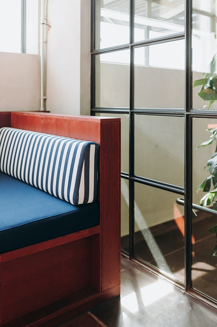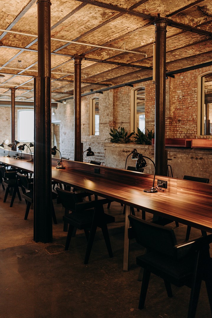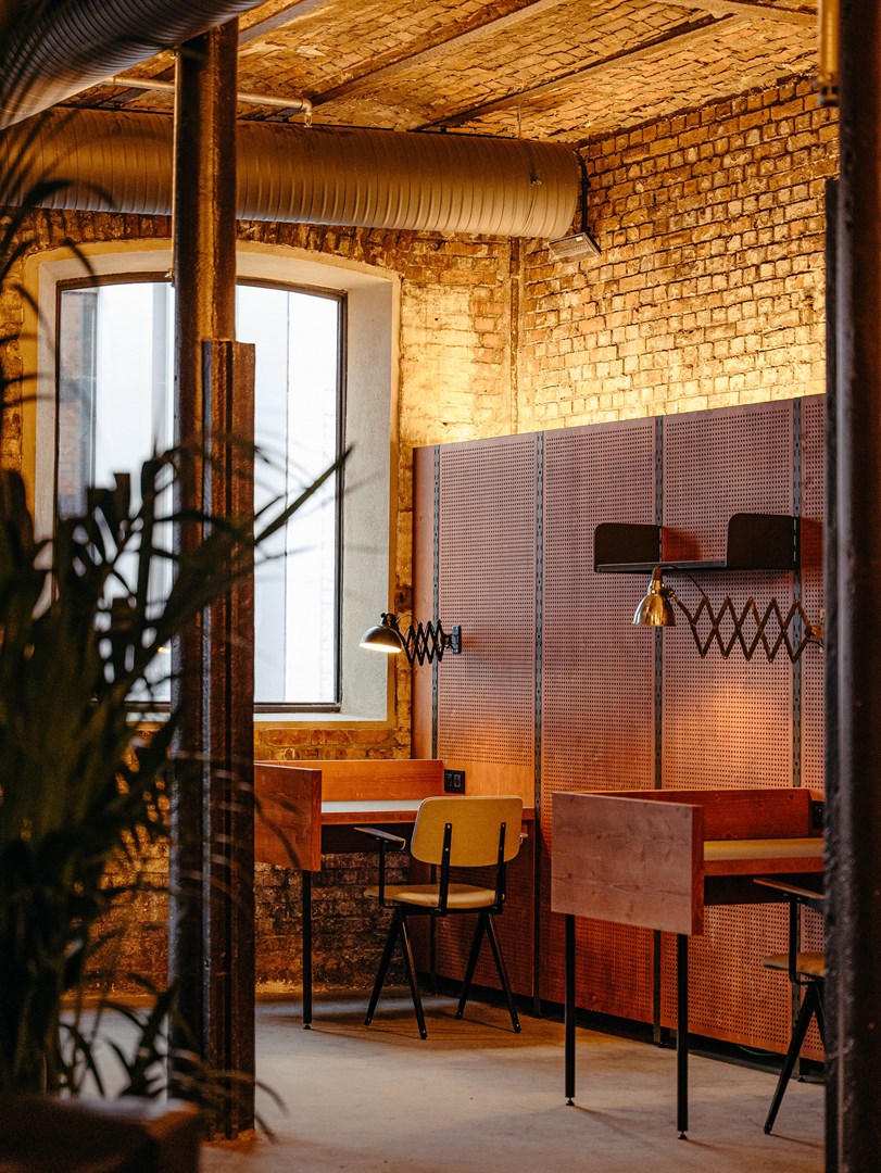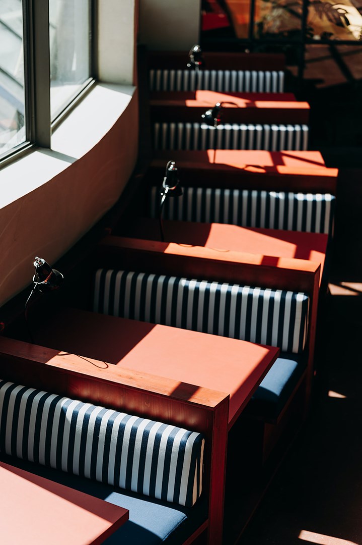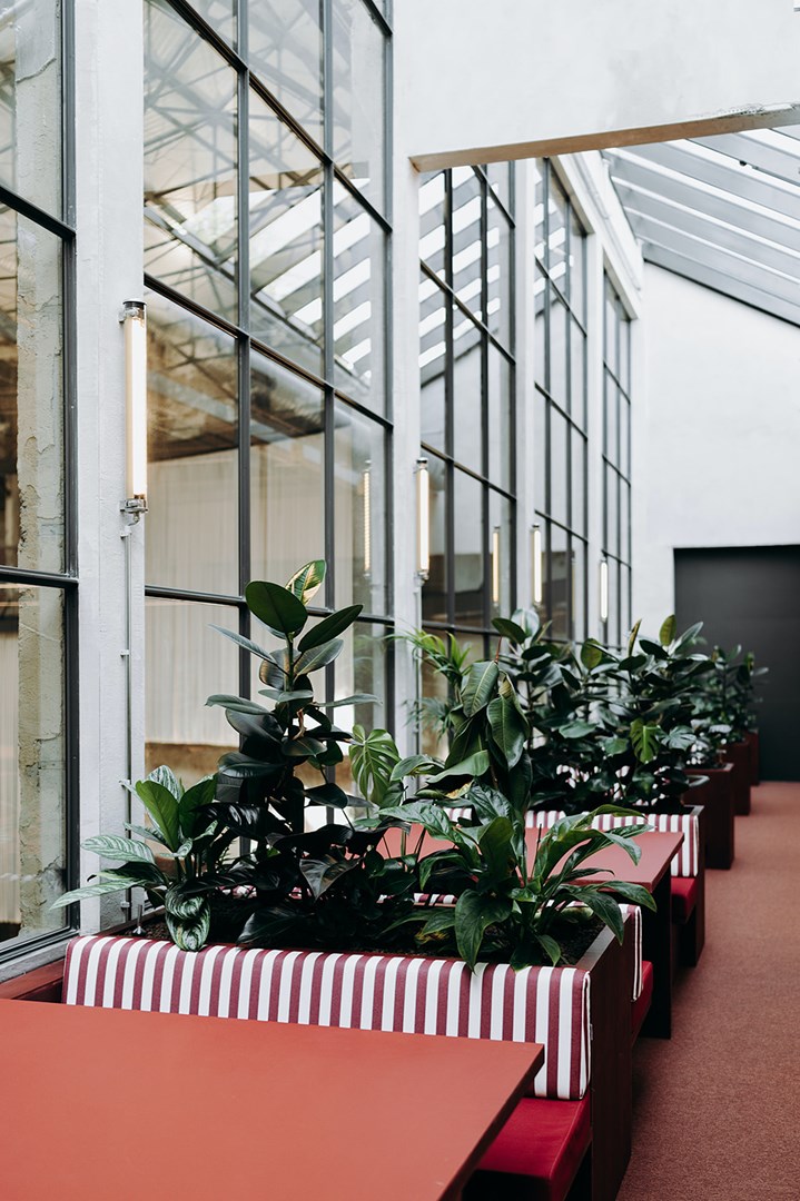 Daarnaast ontwierp het team twee horecagelegenheden: een sushirestaurant op de eerste verdieping en het centrale café, Bar Bougie, met zicht op de Arena. Bar Bougie is gevestigd in de voormalige smeerput van de garage en combineert hout en warme verlichting met de originele groene staalstructuur en betonnen elementen. Dit zorgt voor een balans tussen moderniteit en authenticiteit.