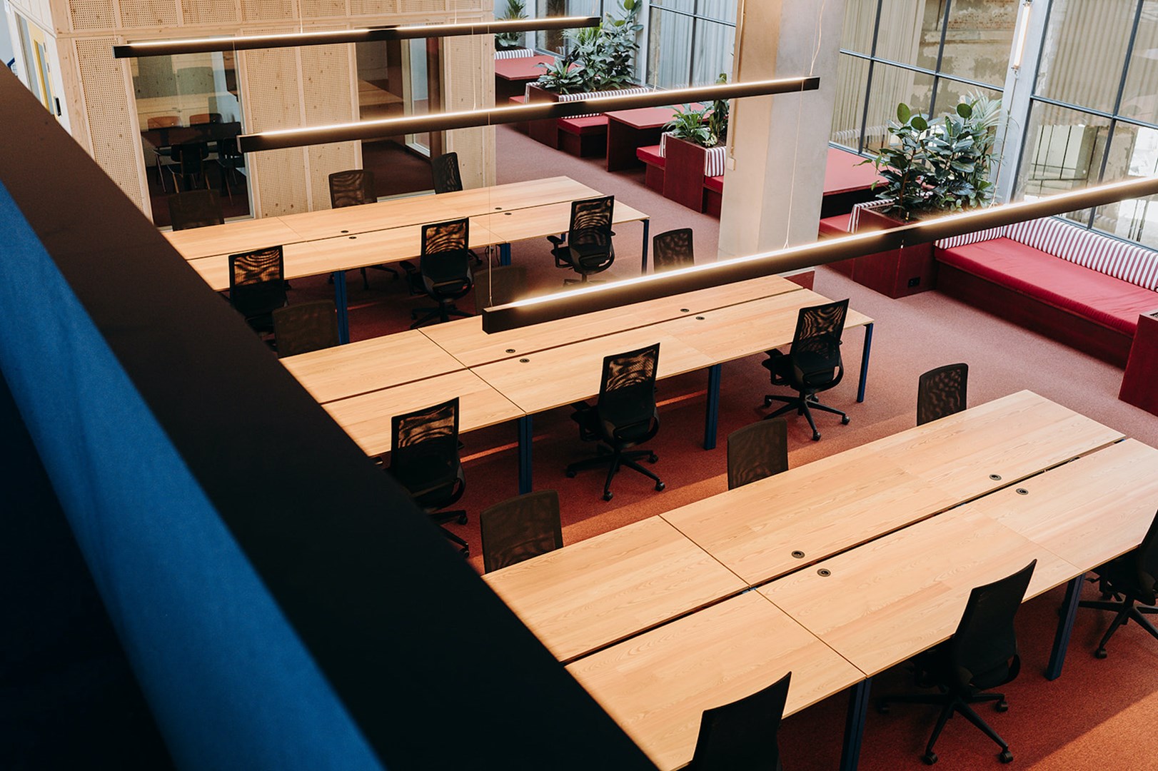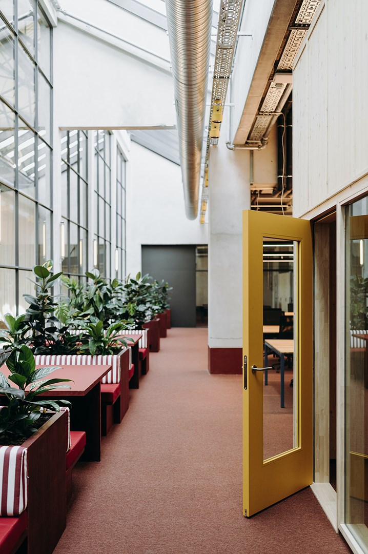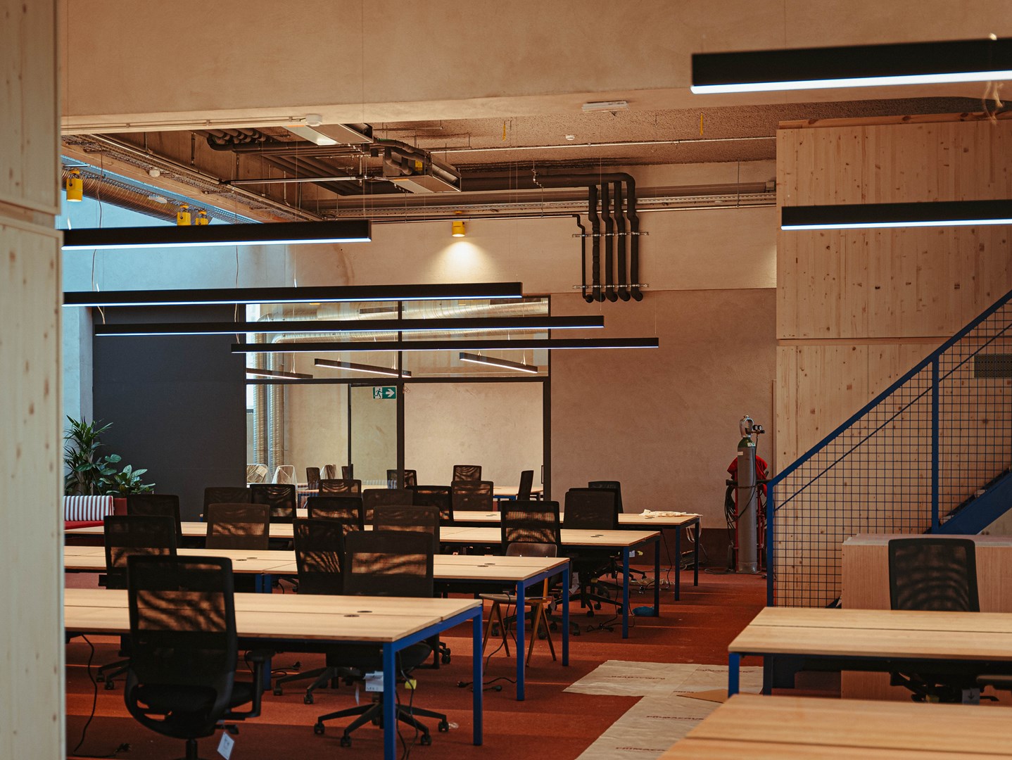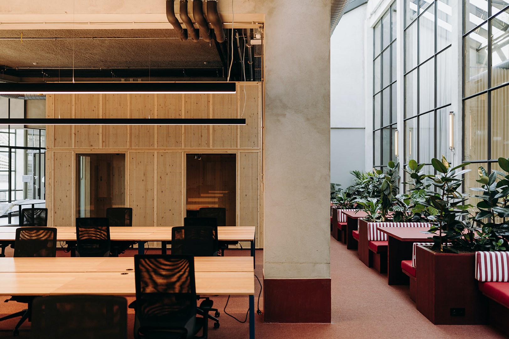 Het ontwerp omvat meer dan dertig werkplekken voor technologie-start-ups, een grote multifunctionele hal, twee expositieruimtes en conferentiezalen, en twee horecavoorzieningen. Door gebruik te maken van kleuren en texturen die verwijzen naar de circustraditie, creëert deze ingreep een inspirerende omgeving die een breed publiek aanspreekt. “Het was voor ons essentieel om het gebouw toegankelijk en uitnodigend te maken, met warme materialen die aansluiten op de menselijke schaal,” licht OYO Architects toe.