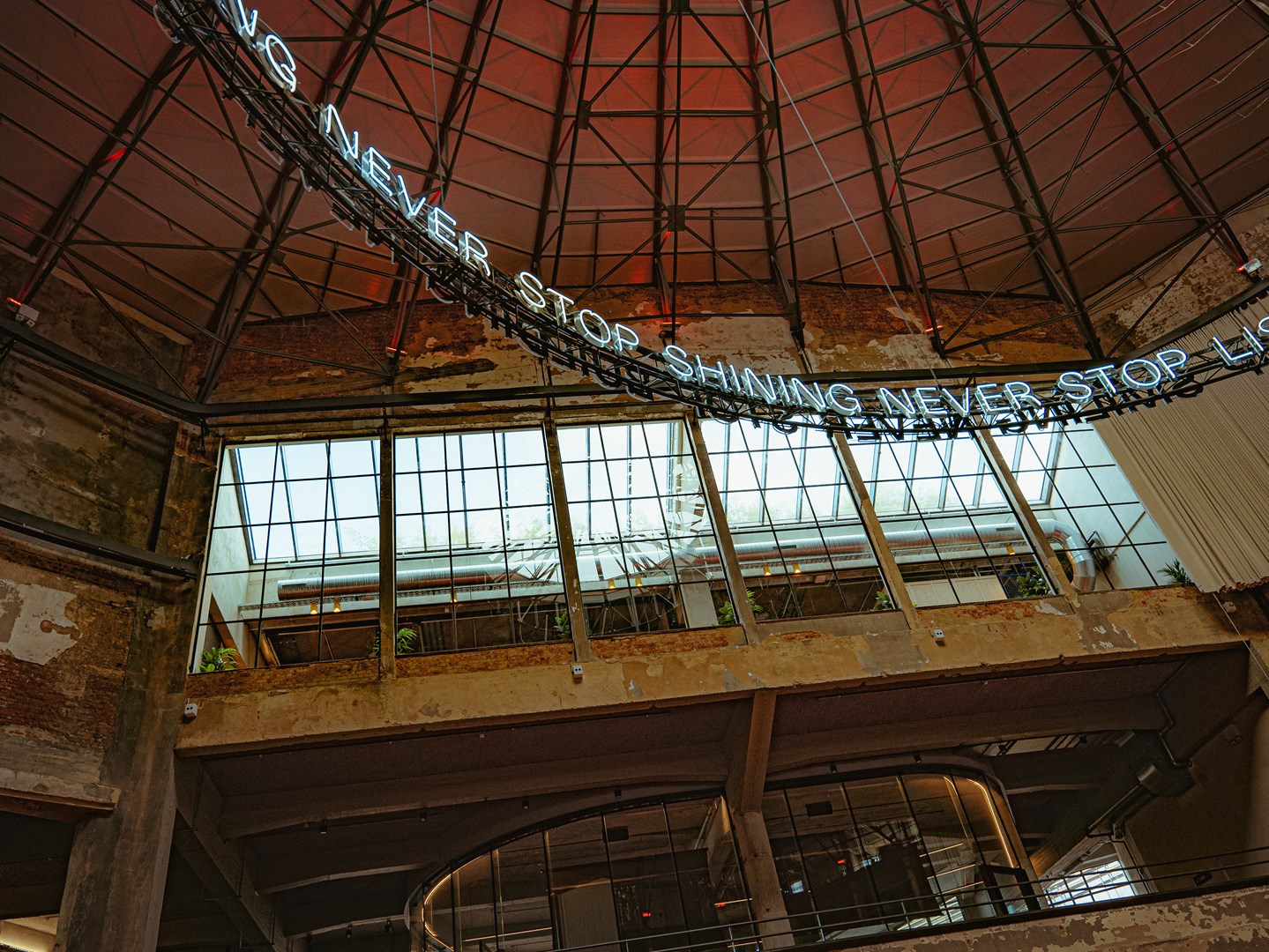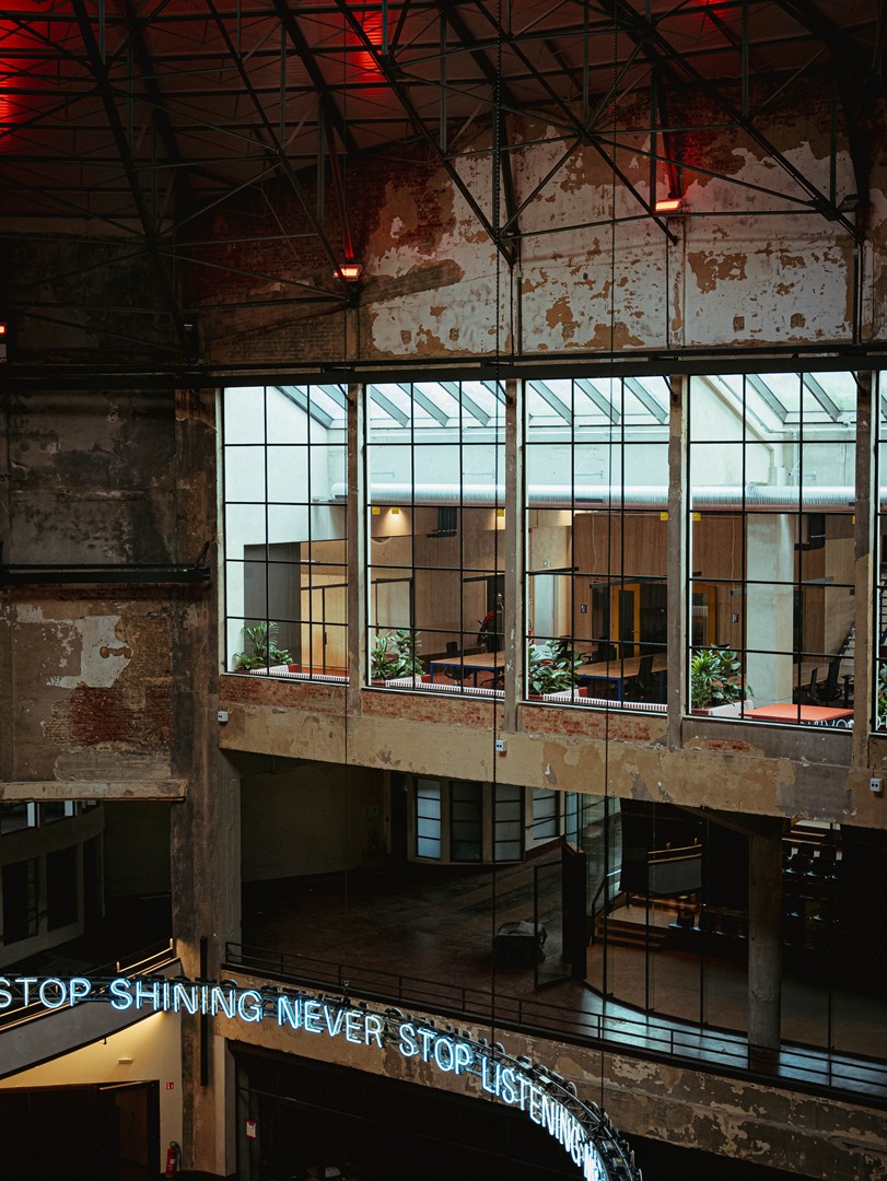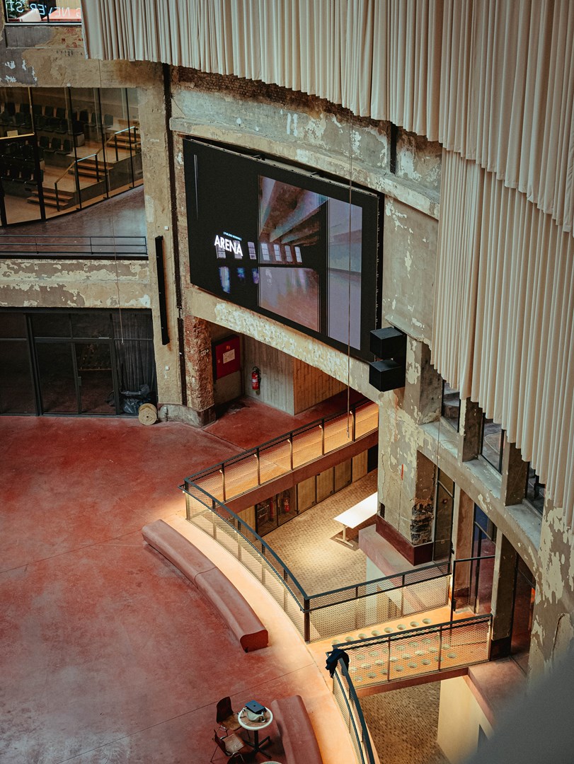 Het centrale element van de campus is de Arena, een flexibele ruimte ontworpen voor uiteenlopende evenementen, van presentaties tot kunstinstallaties. OYO benadrukt met dit ontwerp de industriële en monumentale kwaliteiten van het gebouw en optimaliseert de flexibiliteit ervan. Een bijzonder element is de beweegbare neonlichtinstallatie, die een opvallend visueel accent vormt.