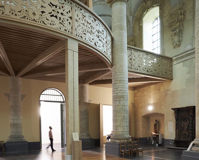 Een nieuw hoogzaal moet een replica van een barok Contius-orgel een plek geven in het unieke barok-interieur van de Sint-Michielskerk te Leuven. De ambitie om met het instrument de originele klankkleur van de barok-orgelmuziek te benaderen, leeft door in het ontwerp van een ‘traditionele’ constructie uit massief eikenhout voor het oksaal. De balustrade vormt een fries van gebogen eiken panelen uit ajour houtsnijwerk, en verzoent in haar patroon ornament van kerkinterieur en orgel.