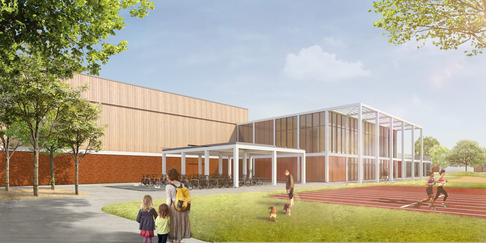 Ontmoeten staat centraal in duurzaam en compact balsportcentrum Willebroek (ZJA, Archiles architecten & OMGEVING)