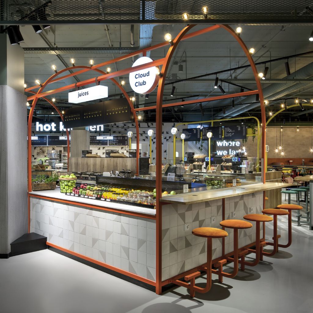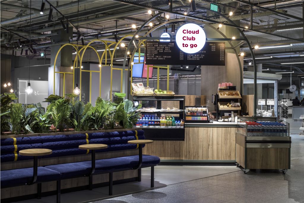 Op microniveau is er veel onderzoek gedaan om te komen tot de best mogelijke inrichting. Die werd zo gepositioneerd dat het onmogelijk is om voorbij te wandelen zonder geconfronteerd te worden met alle goodies. Vandaar de diagonale oriëntatie van de lay-out. Voorbijgangers stoten letterlijk hun hoofd tegen The Cloud Club, terwijl bezoekers zich van nature binnen en buiten bewegen.